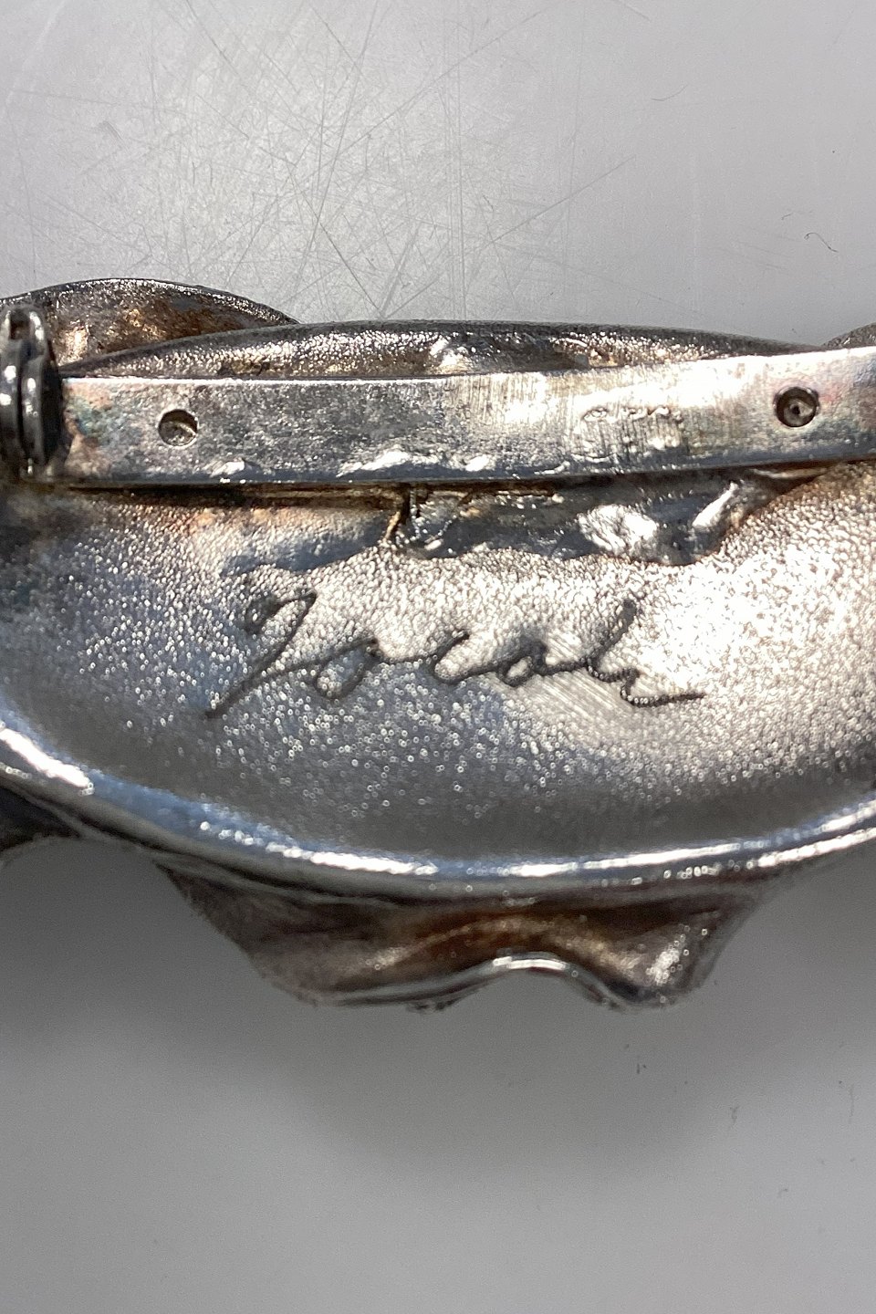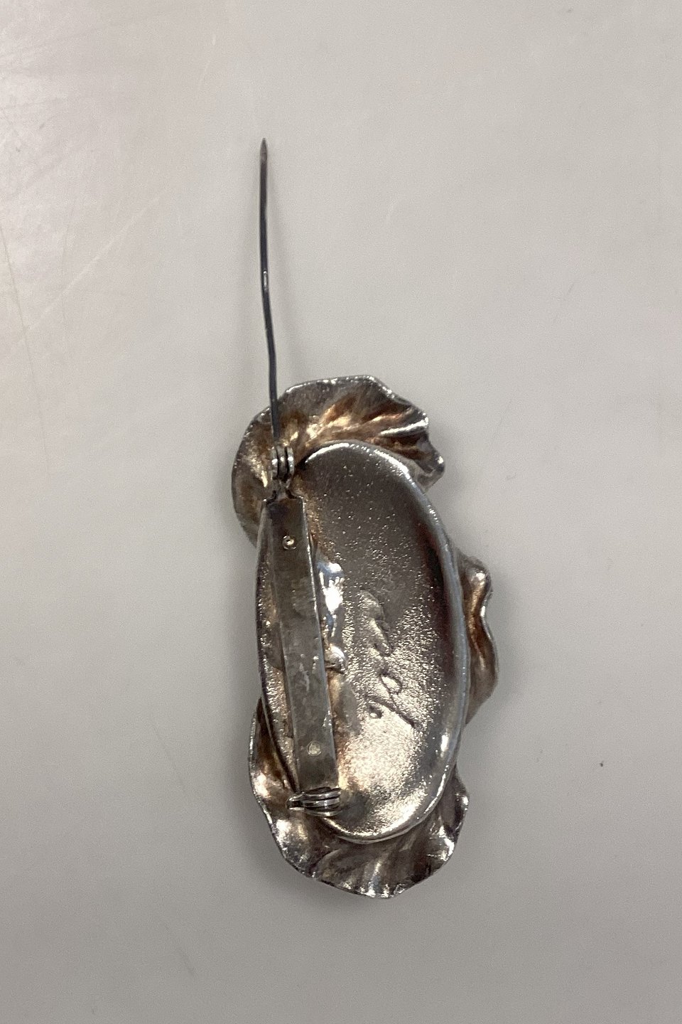Description: Ornamented Jacob Hull Brooch in Silver Plated Metal with Black Stone