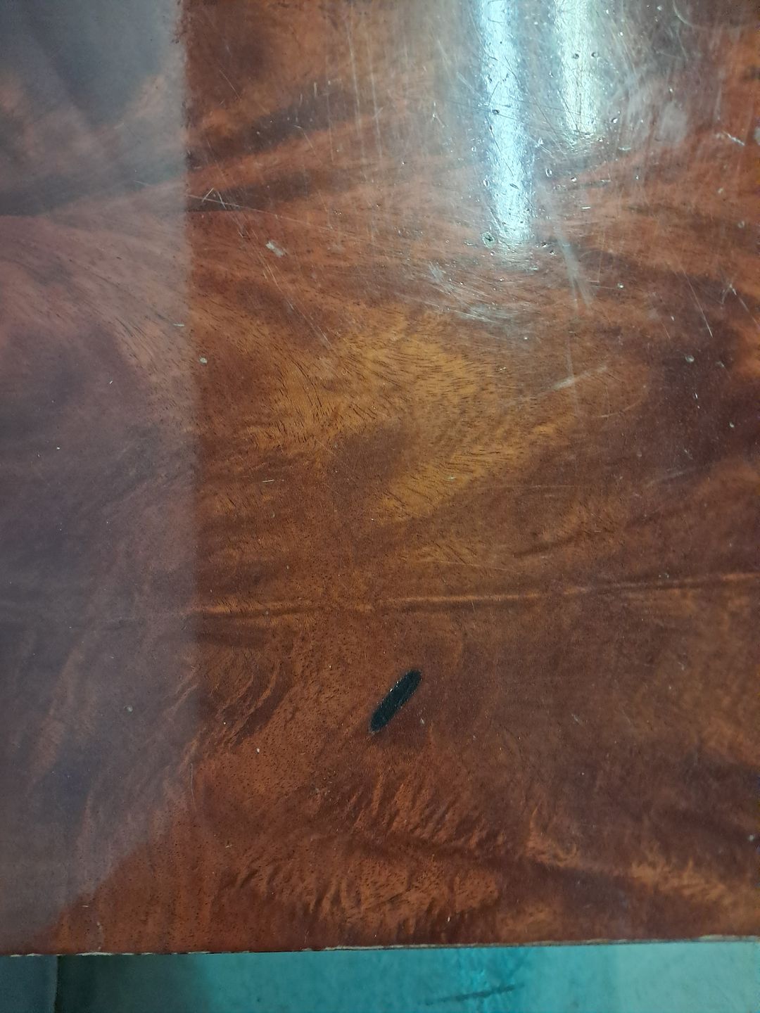 Beskrivelse: 2 Søjleborde i fineret mahogni, fra 1910erne.