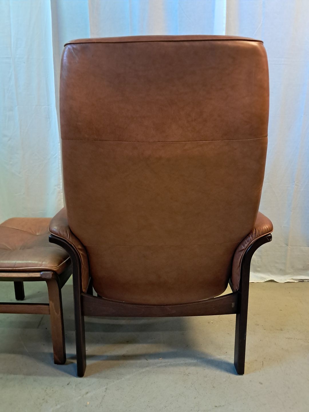 : Læder lænestol med skammel, fra 1990erne.
