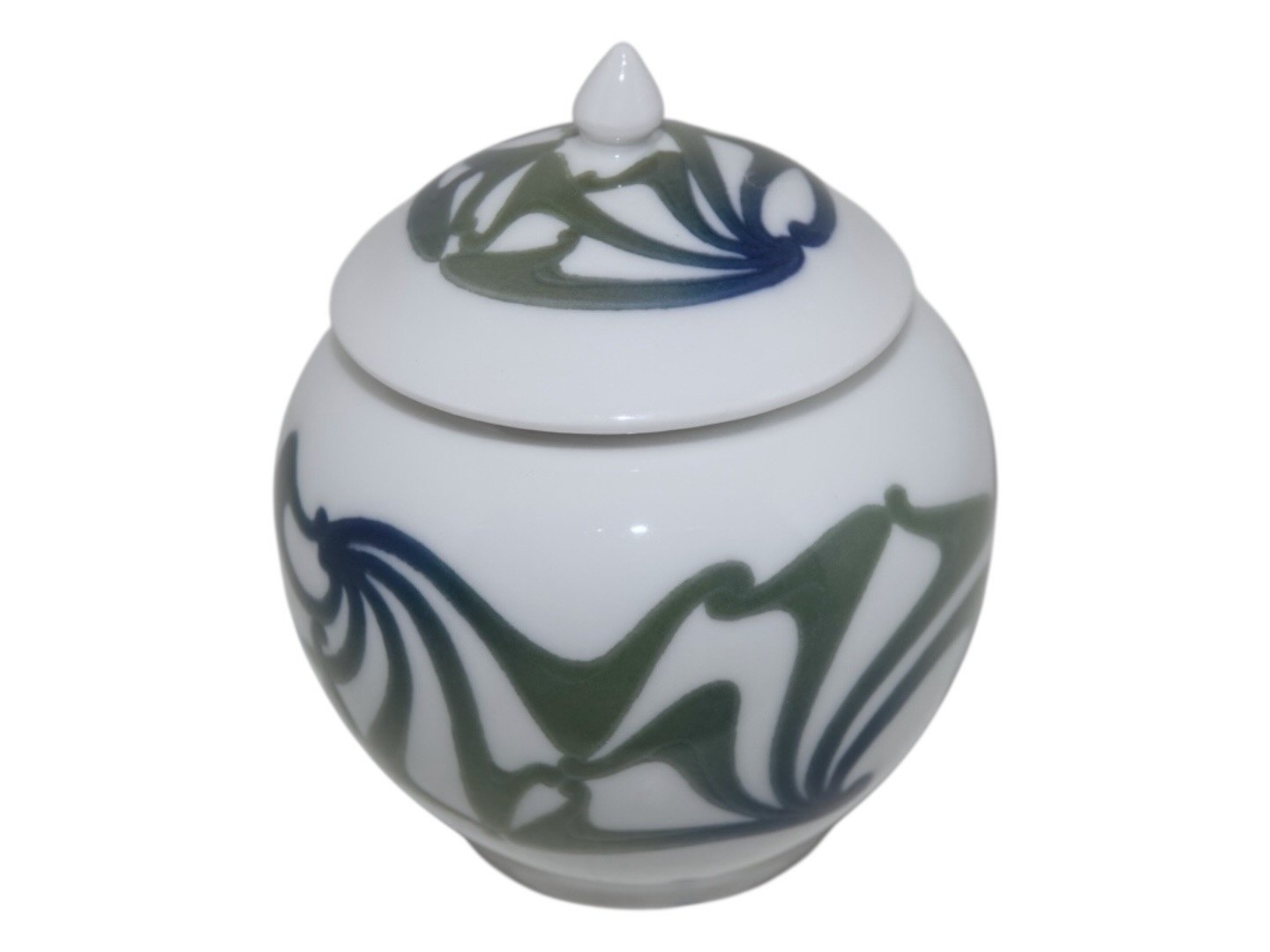 Beskrivelse: Bing & Grøndahl, lille Art Nouveau krukke med grønne og blå farver