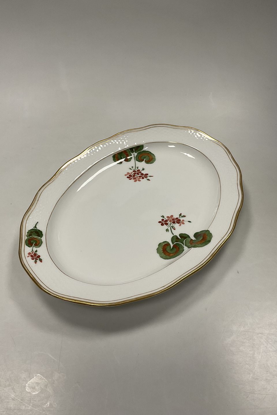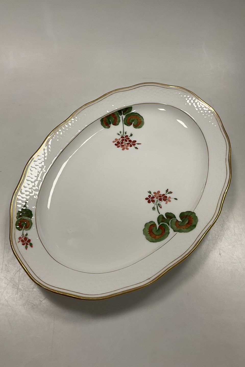 Beskrivelse: Royal Copenhagen Art Nouveau Stel No. 225 Pelargonoe Ovalt Fad No. 2012