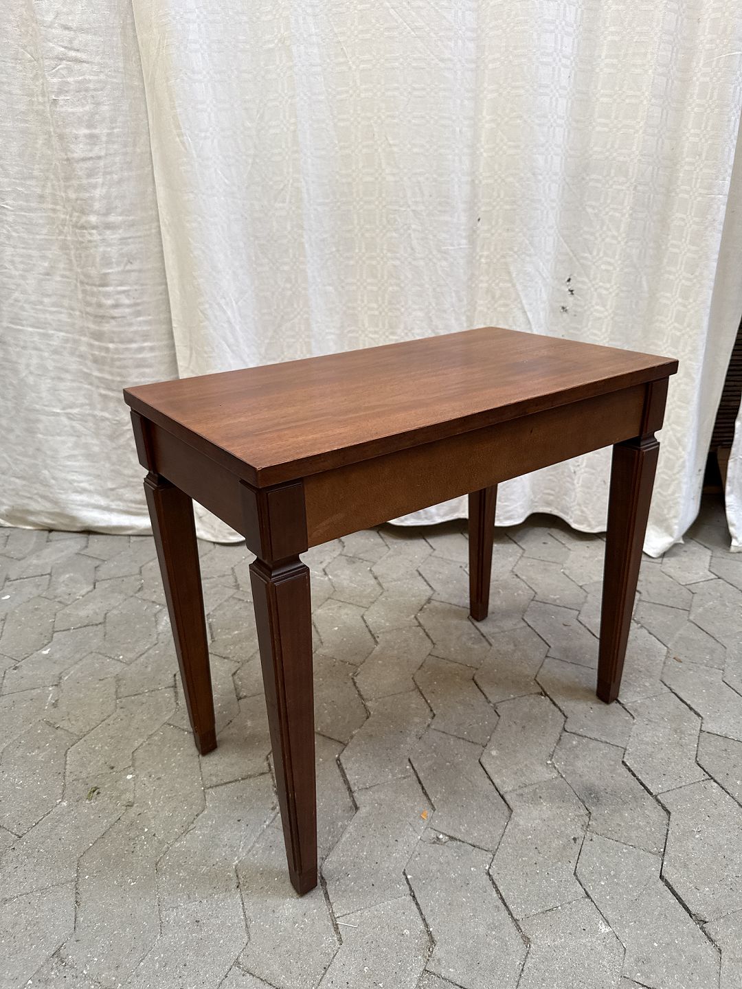 : Lille bord med kiste funktion i fineret mahogni fra 1980’erne