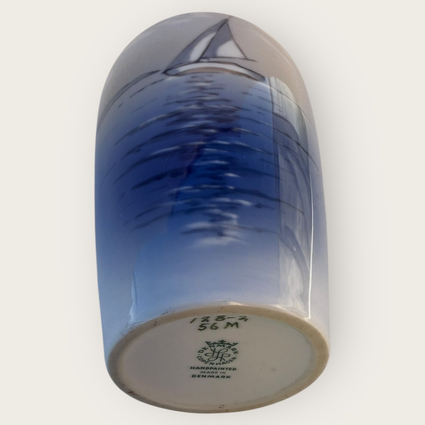 : Lyngby vase med sejlskib, #128-2, højde 17,5cm, fin stand