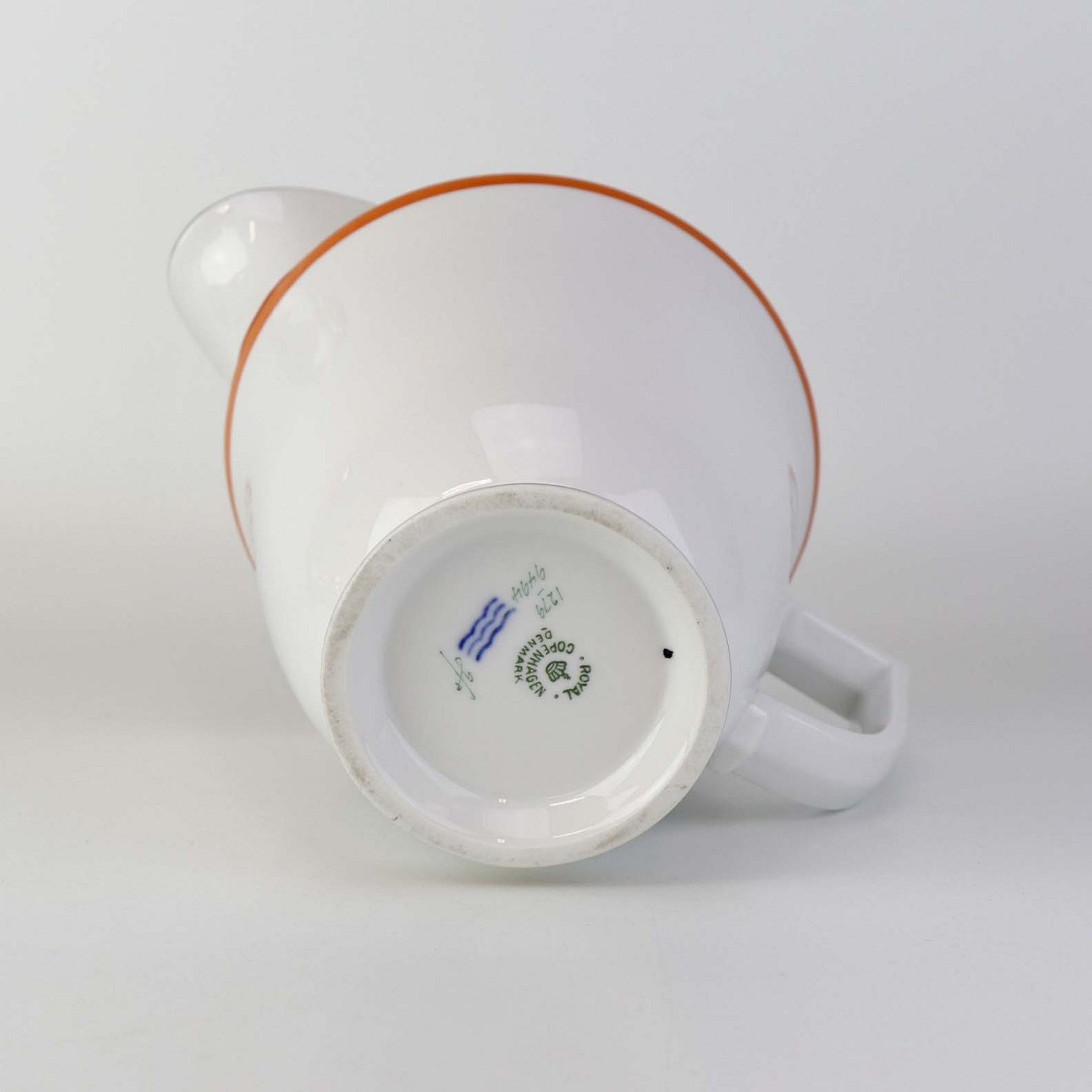 Beskrivelse: Kande i kongeligt porcelæn fra stellet Det spanske stel. Nr. 1279/9494