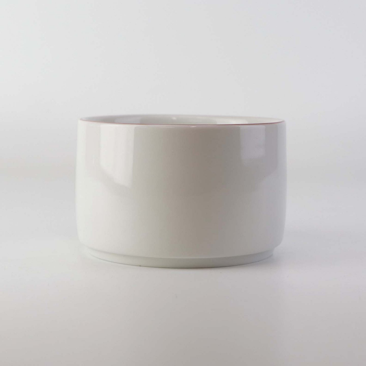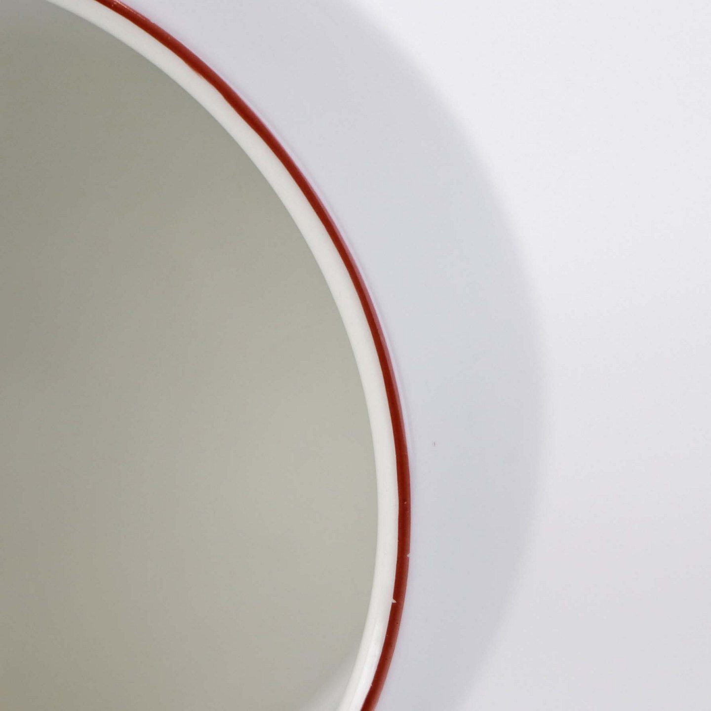 Service i glat hvidt porcelæn med dekoration i tynd rød streg.