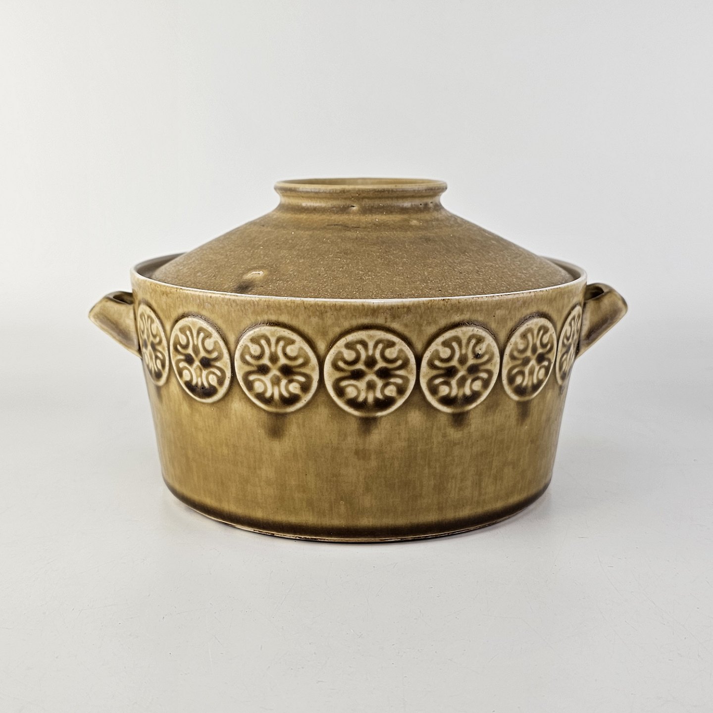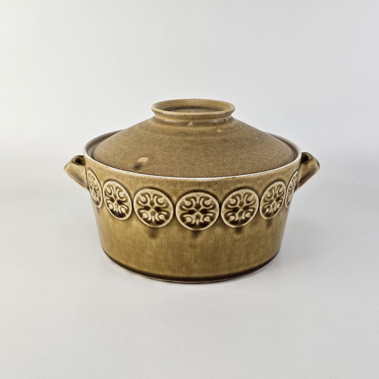 Beskrivelse: Gryde med låg i stentøj fra stellet Bauta