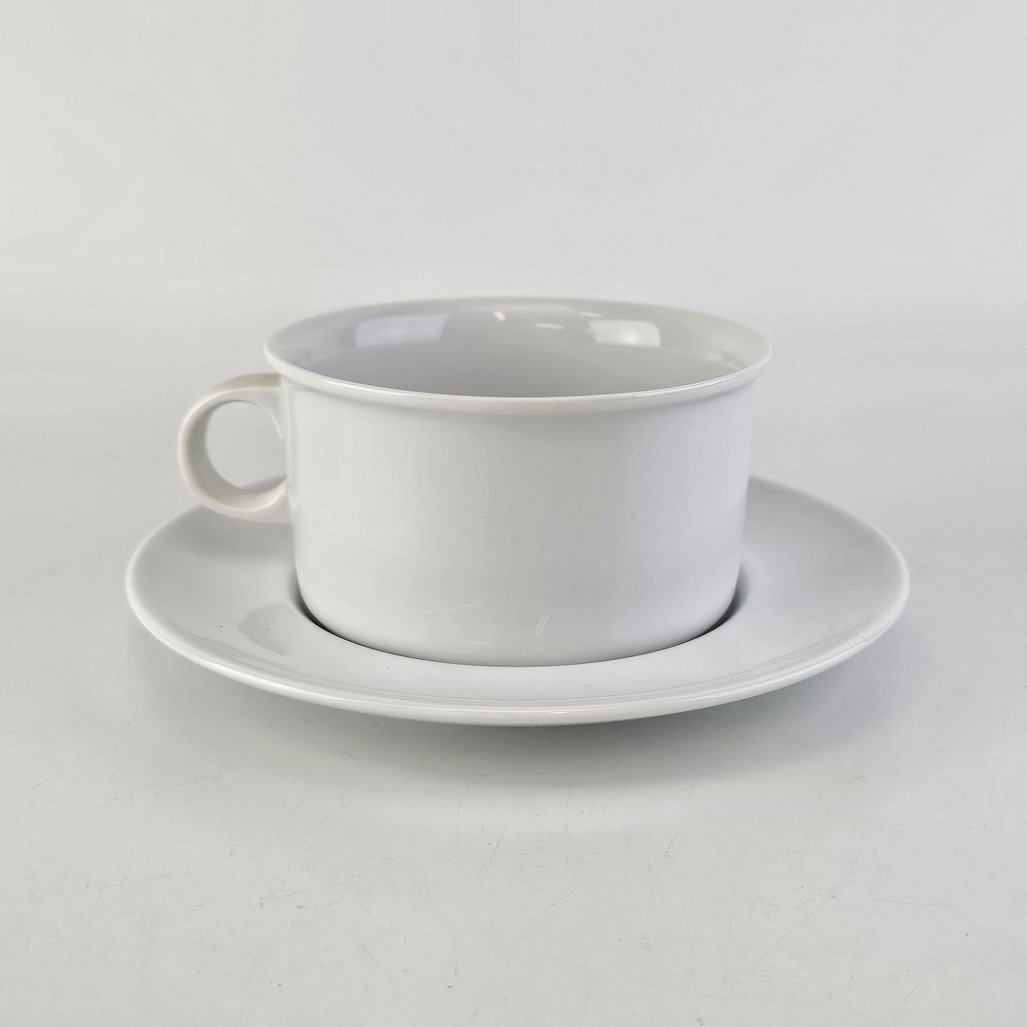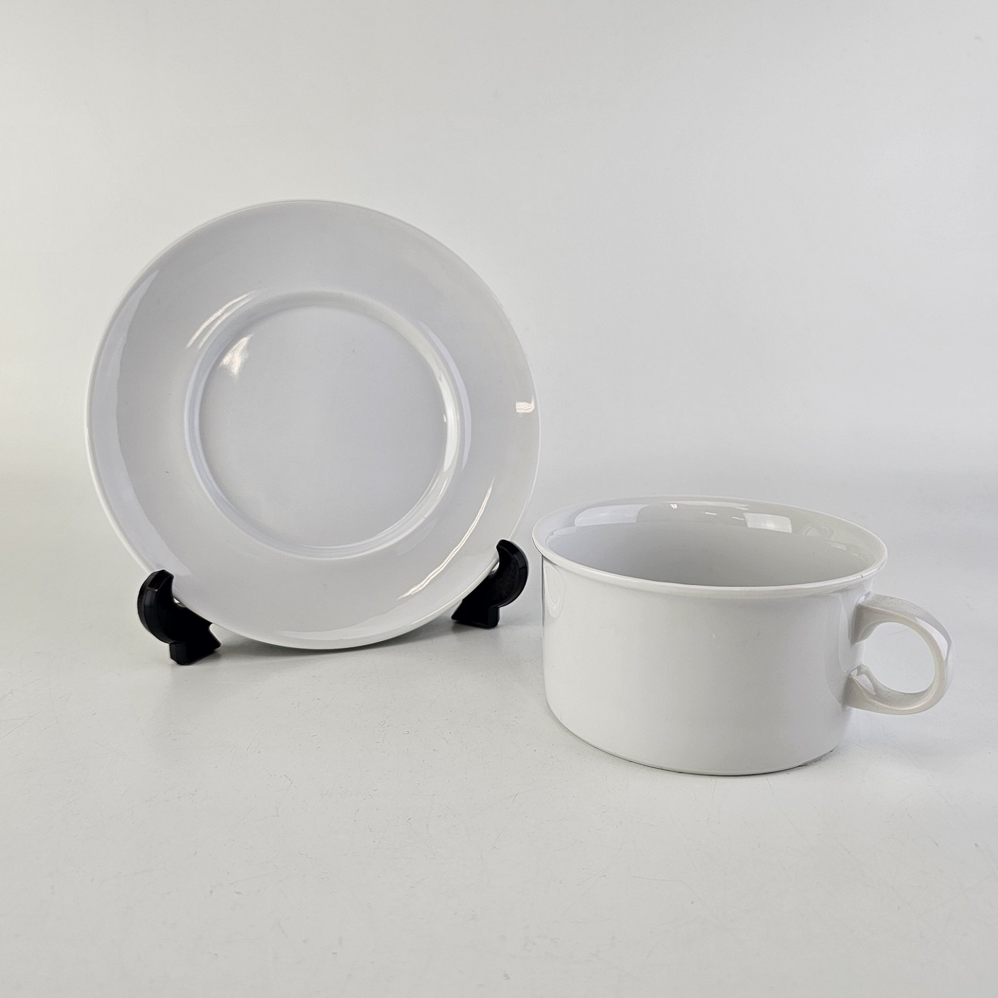 Beskrivelse: Kaffekop med underkop i glat hvidt porcelæn fra stellet Hvid Domino