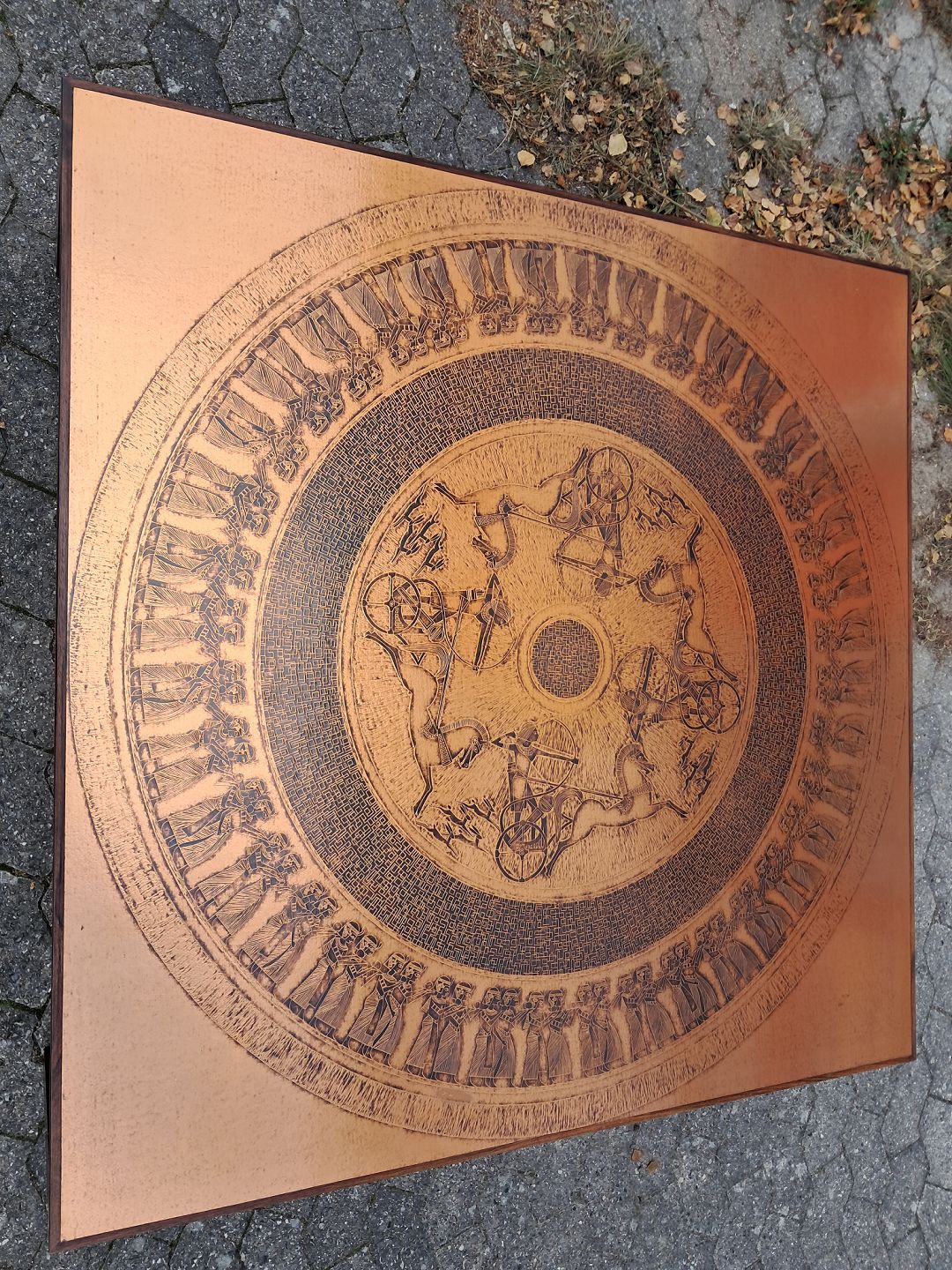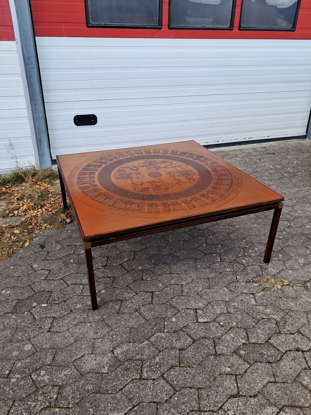 Beskrivelse: Sofabord i fineret palisander med metalplade, fra 1960erne.