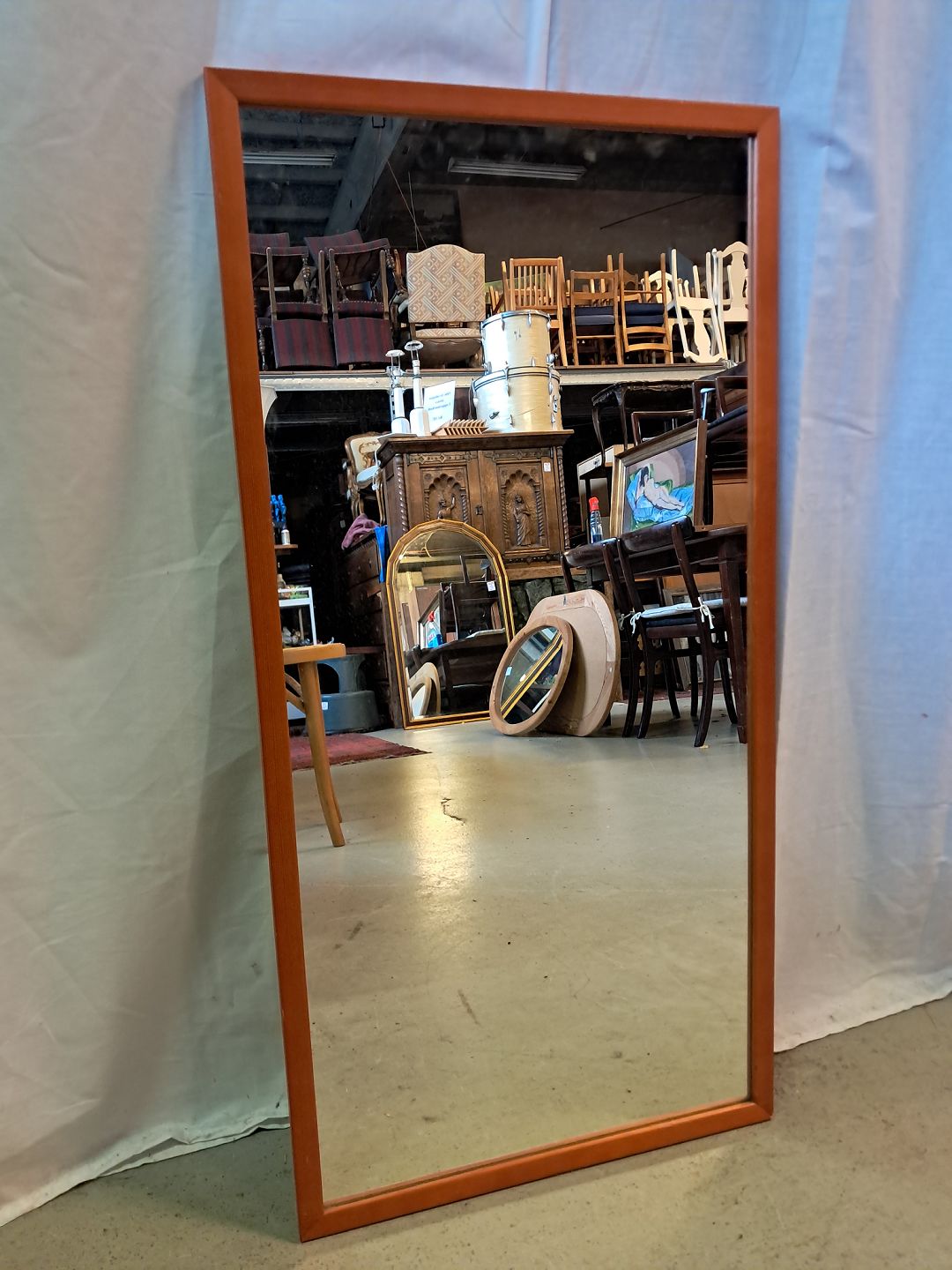 Beskrivelse: Spejl i massivt og bejdset fyrretræ, fra 1980erne.