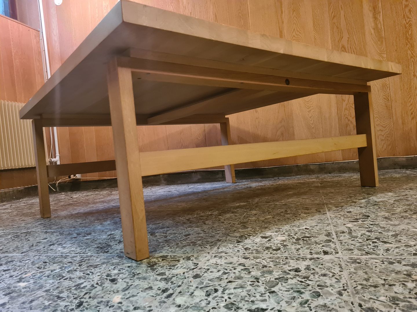 Beskrivelse: Kvadratisk sofabord fra 1970´erne i massiv eg. Formgivet hos Laboremus i Viborg. Fremstår pænt og velholdt uden nævneværdige brugsspor.