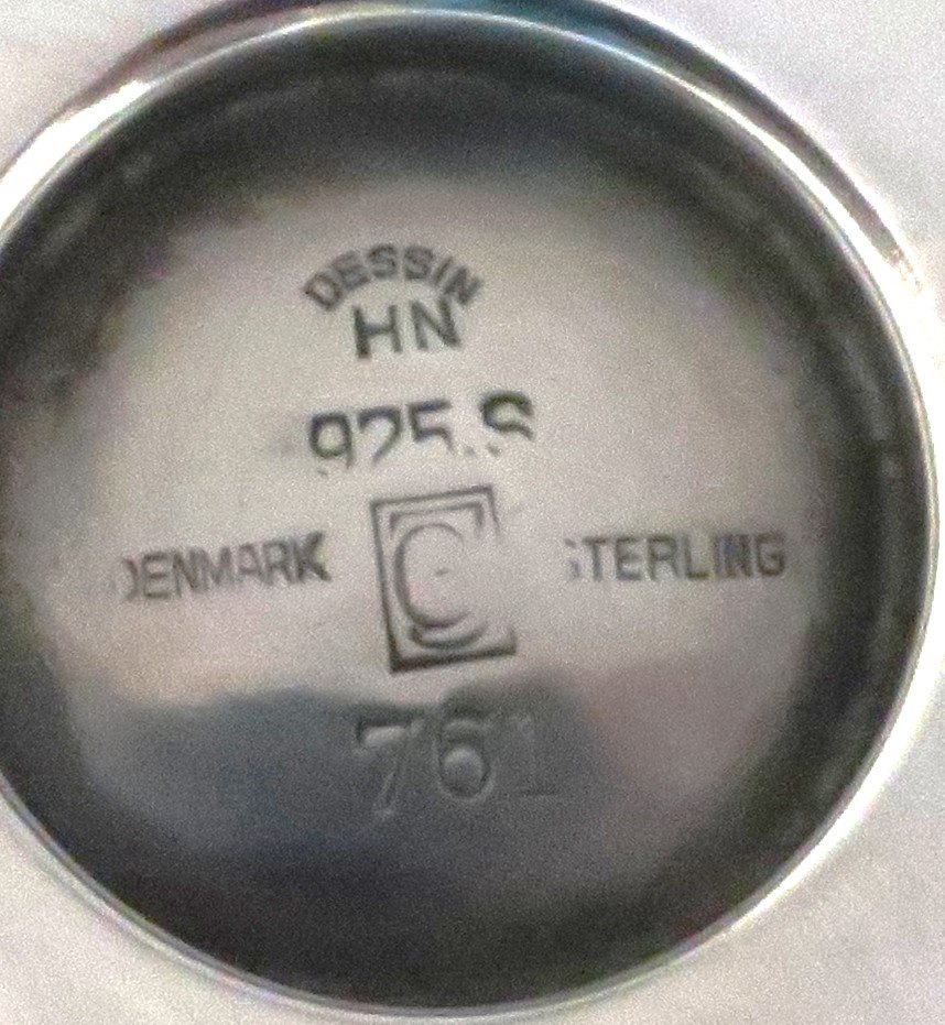 Beskrivelse: Georg Jensen. Saucenæb / sovseskål med håndtag. Harald Nielsen. Model 761. Længde 17 cm. Højde 7,5 cm. Produceret 1933 - 1945