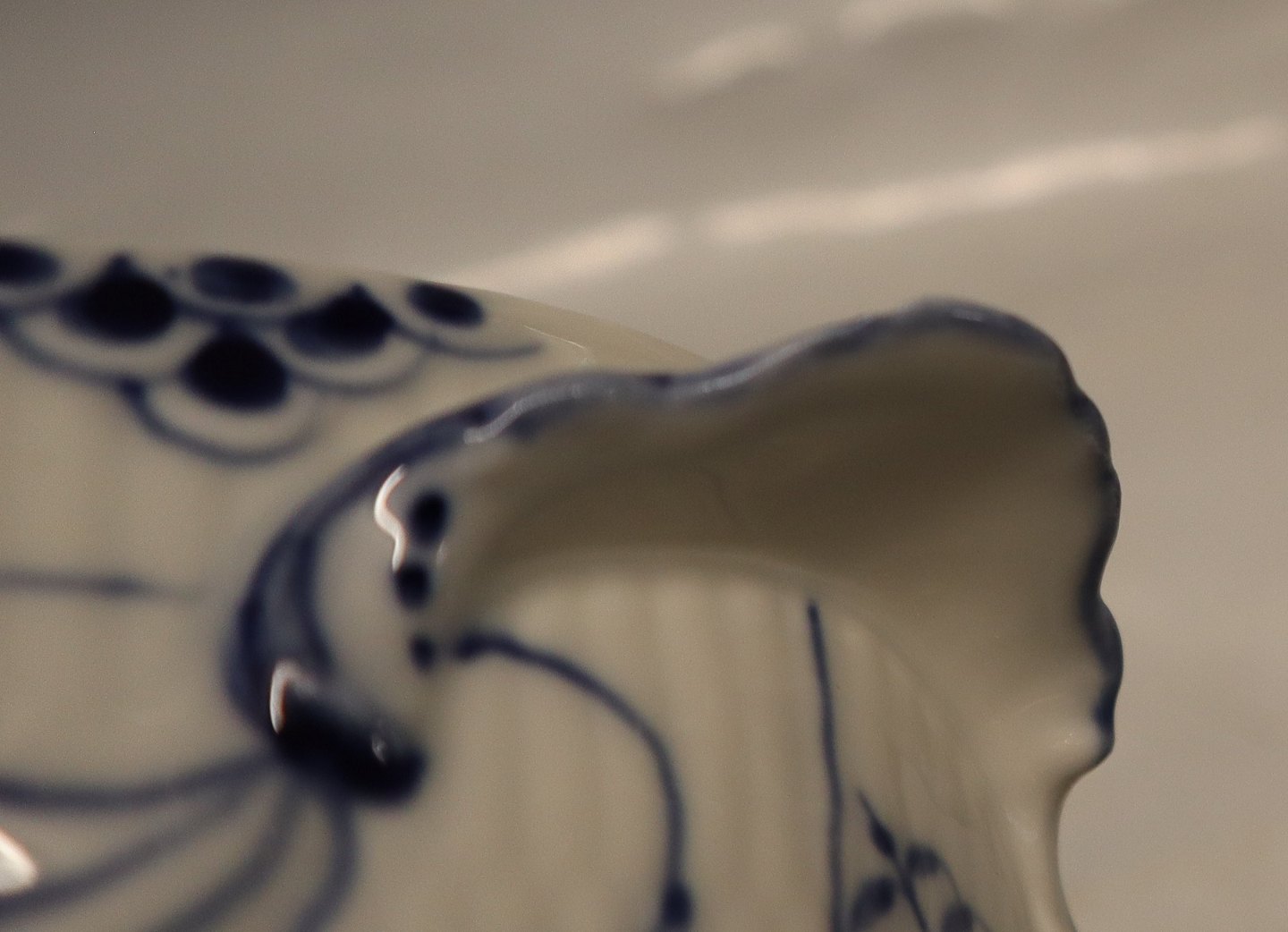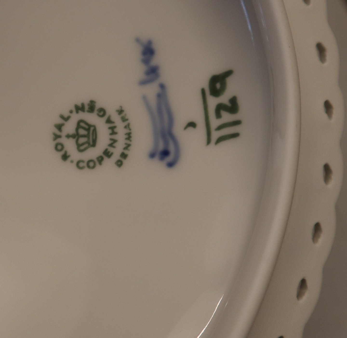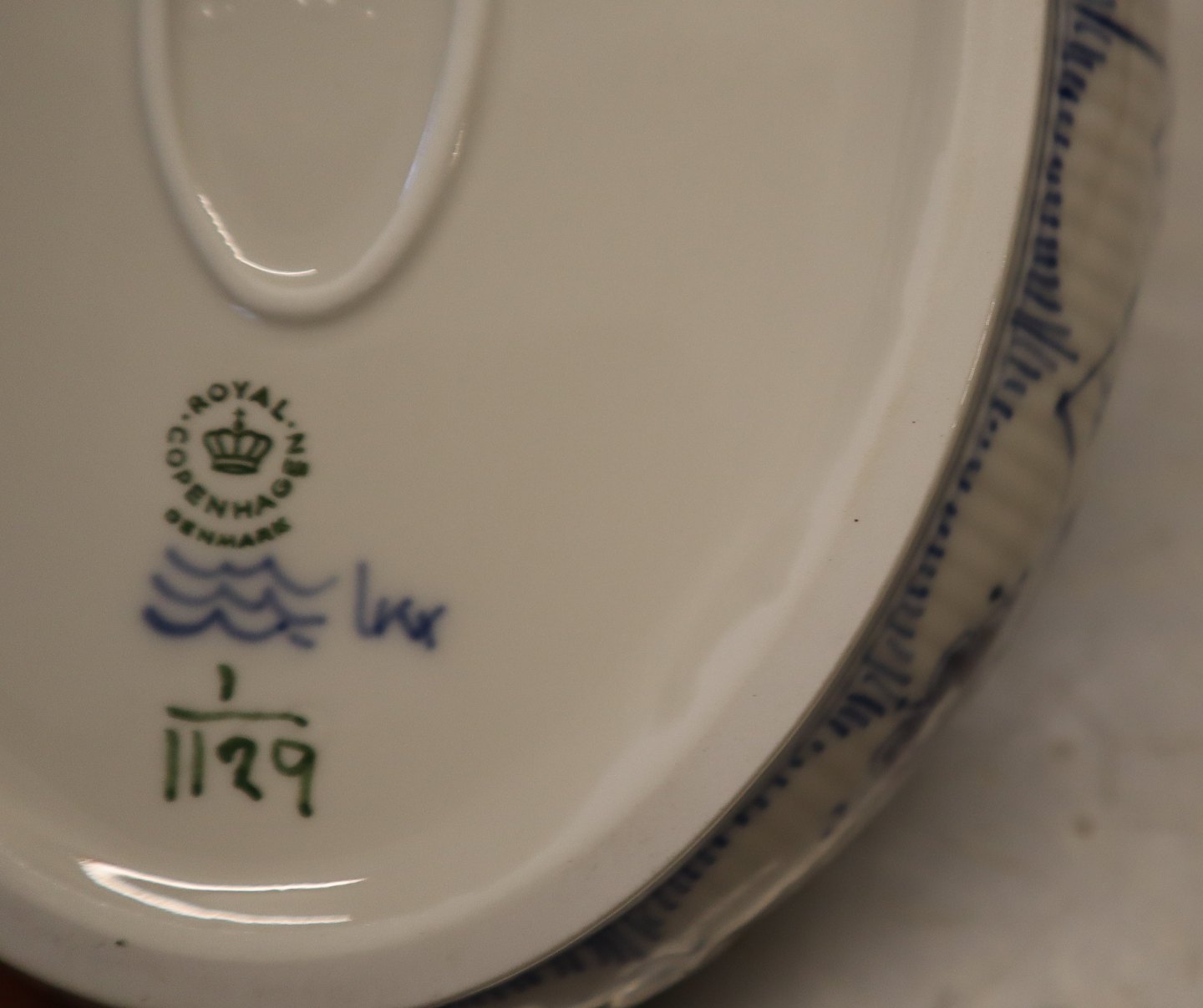 1129-1 Ragoutfad/lågfad, ovalt med hanke ca 16 x 27.5 cm Royal Copenhagen Musselmalet Helblonde