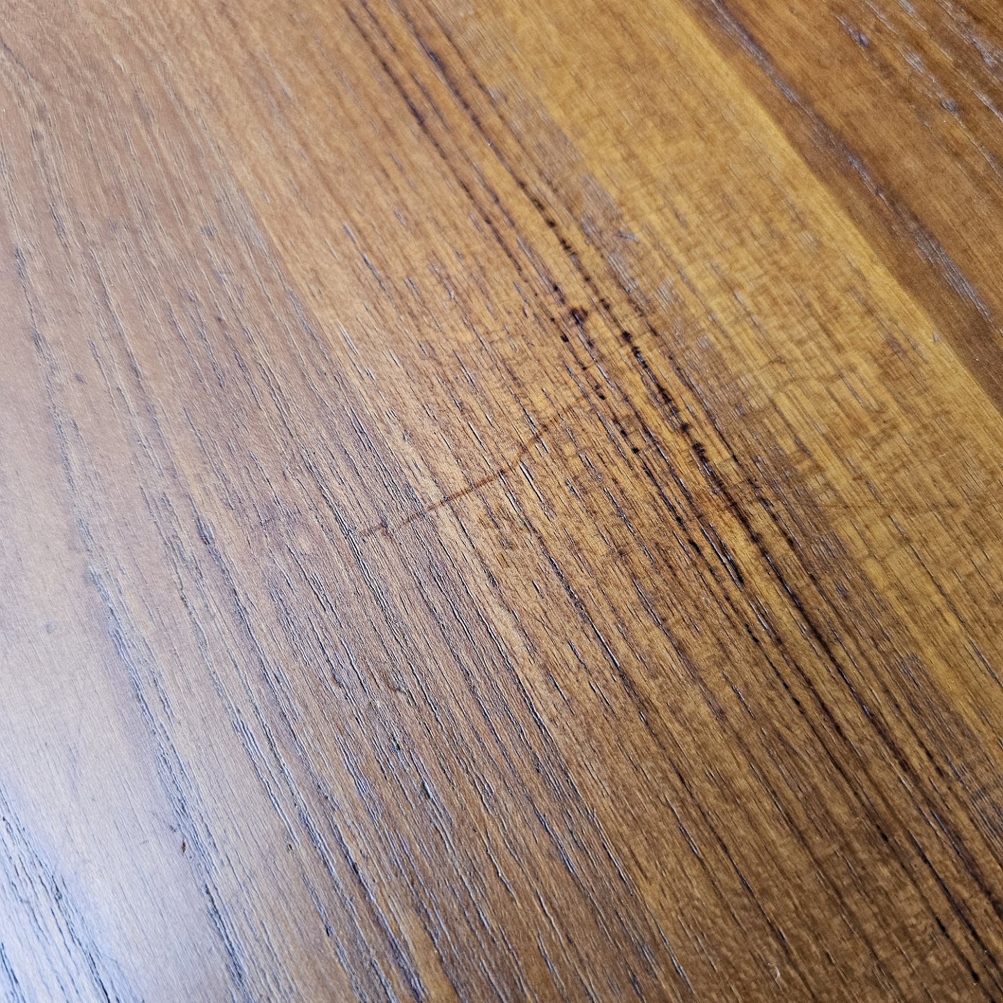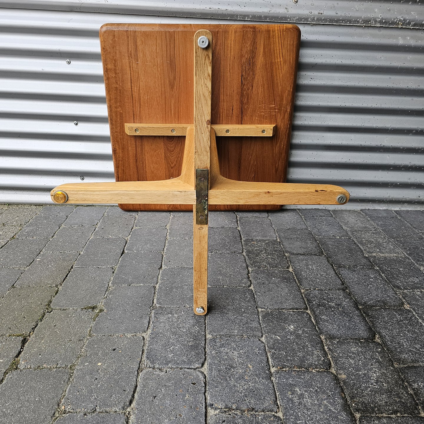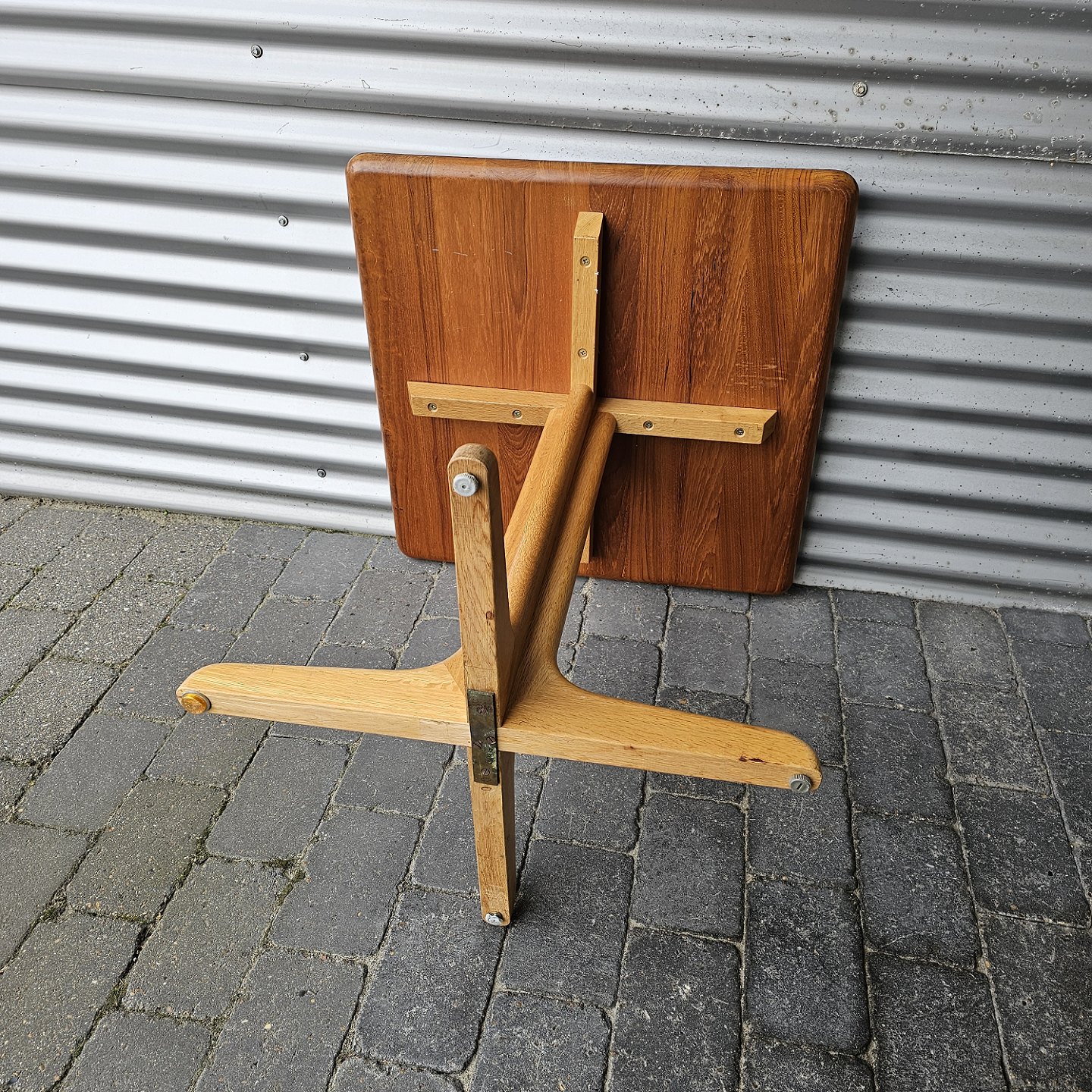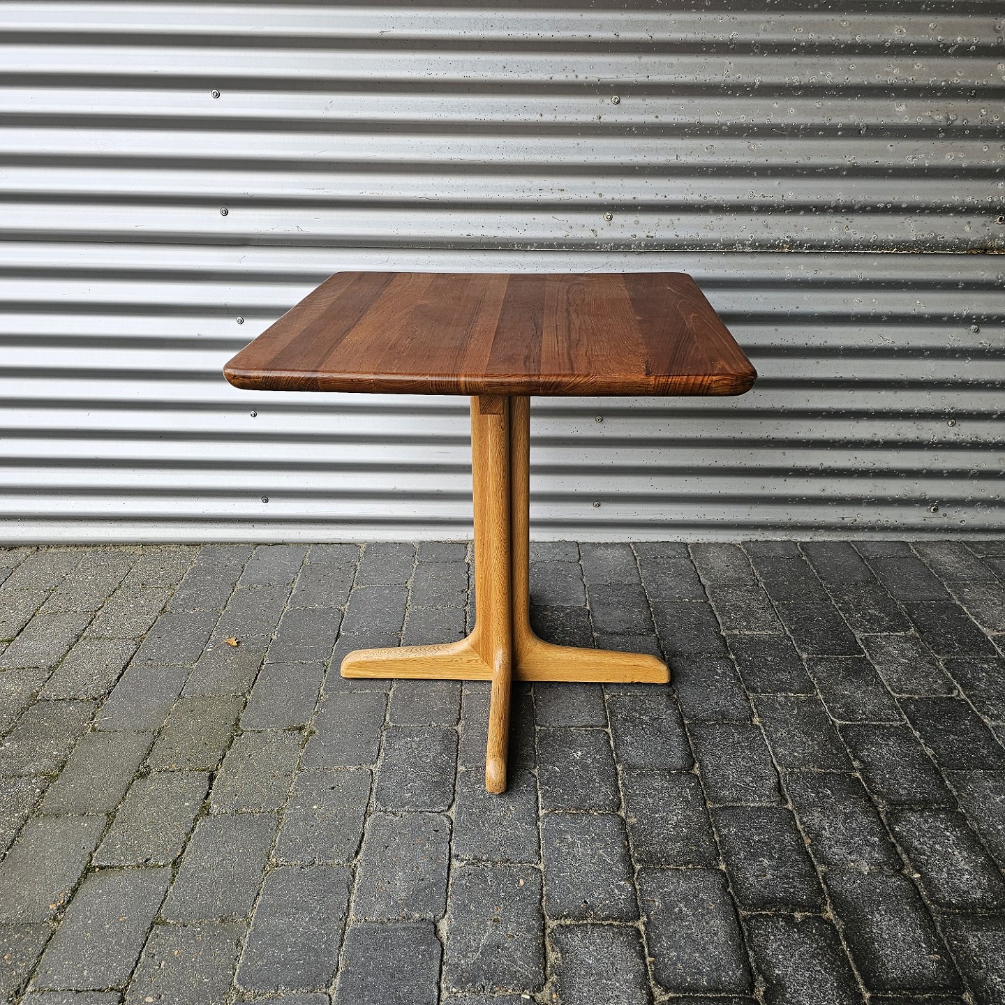 Beskrivelse: Kvadratisk spisebord i massiv teak med firepasfod i egetræ