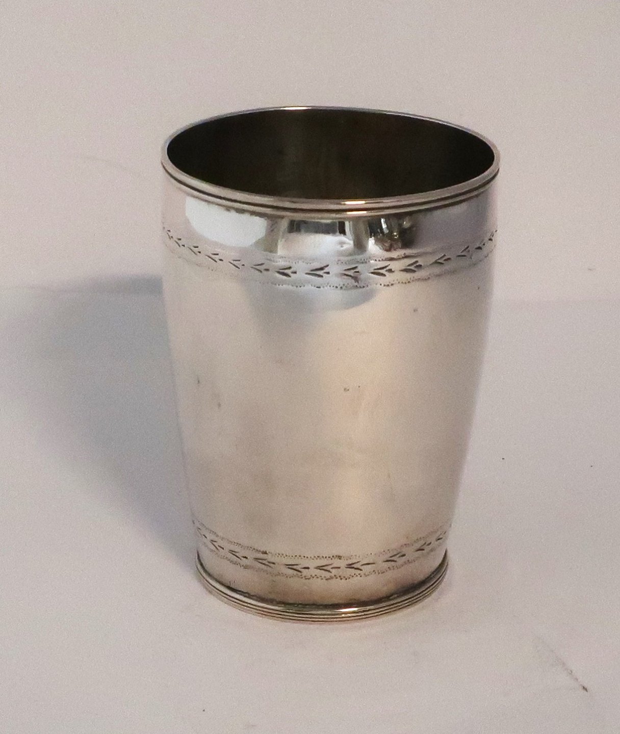 Jørgen Mønster, København. Sølv bæger. Højde 9 cm. Diameter 6,5 cm. Produceret 1812.