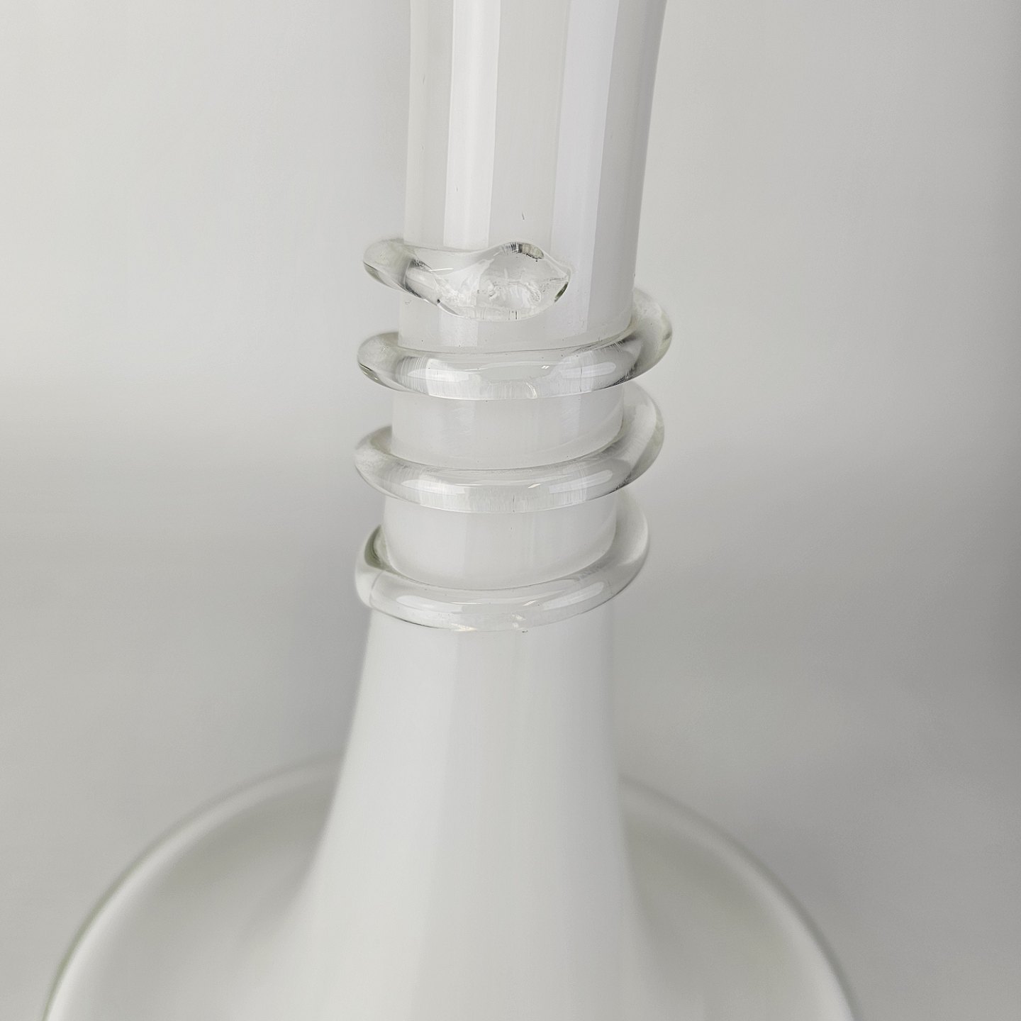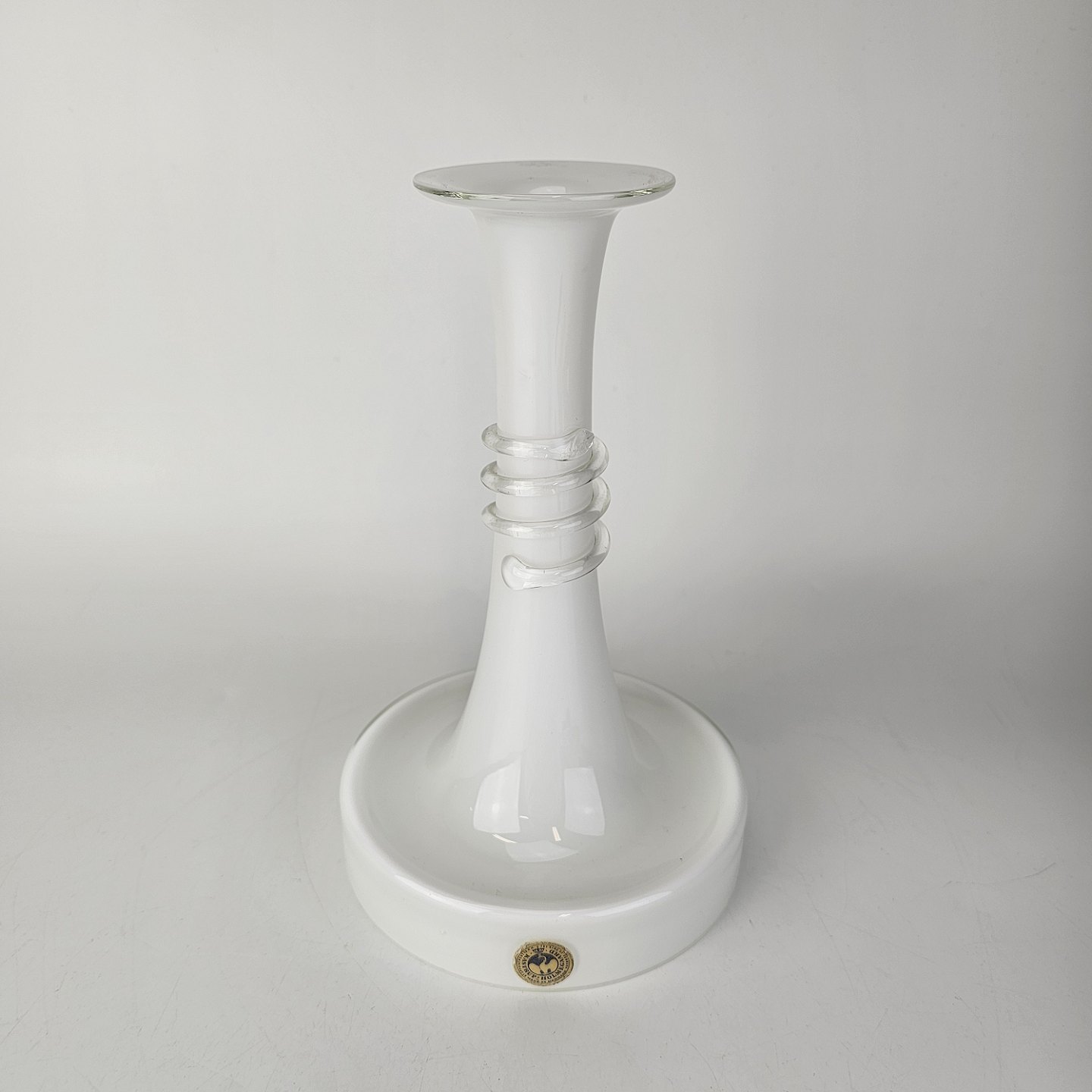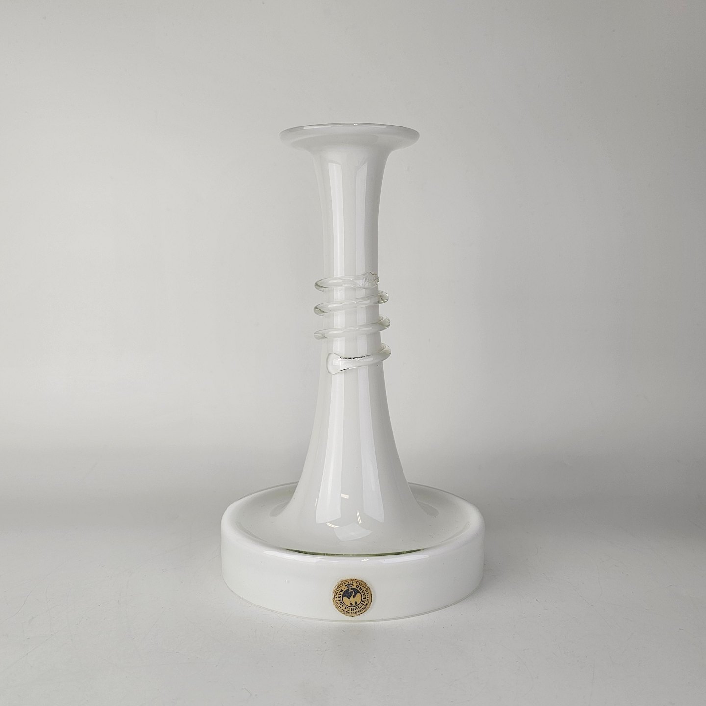 Beskrivelse: Lysestage i hvidt opalglas omviklet med en klar glastråd fra serien Napoli