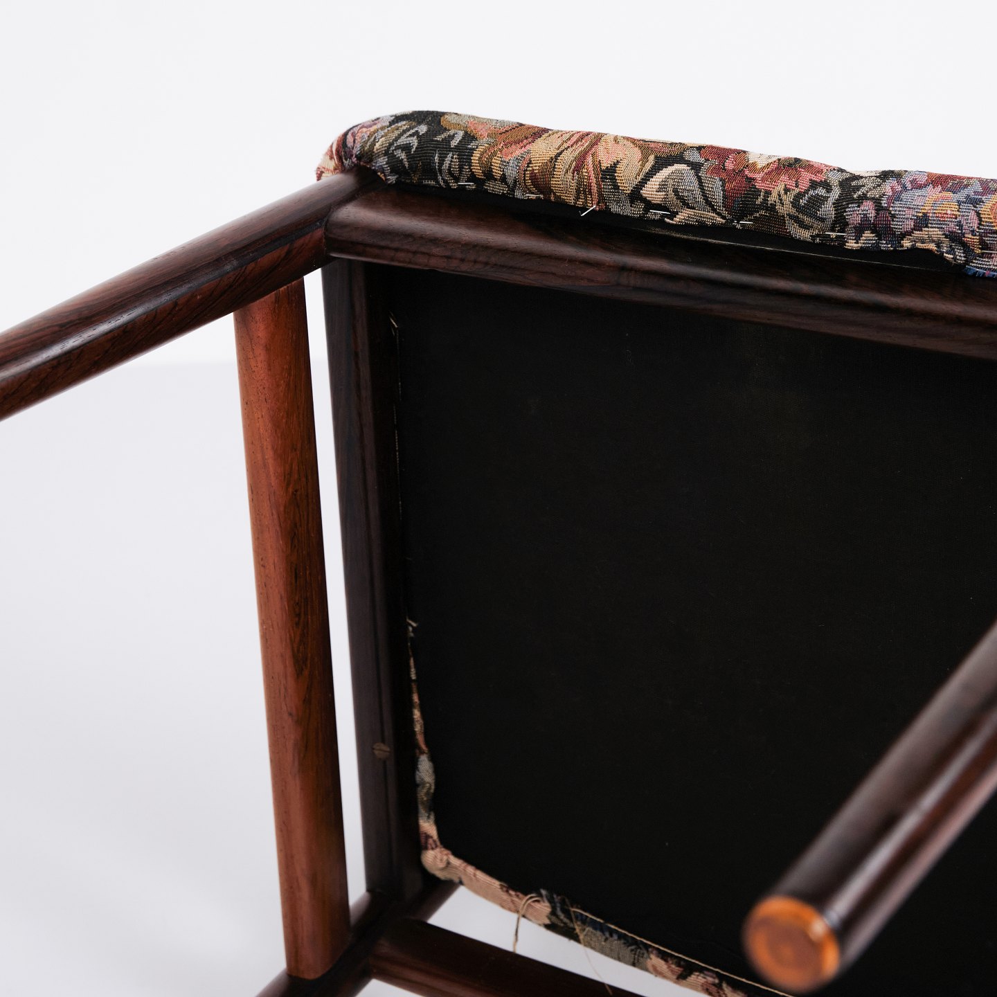 — Materiale: Palisander, stofbetrukket sæde