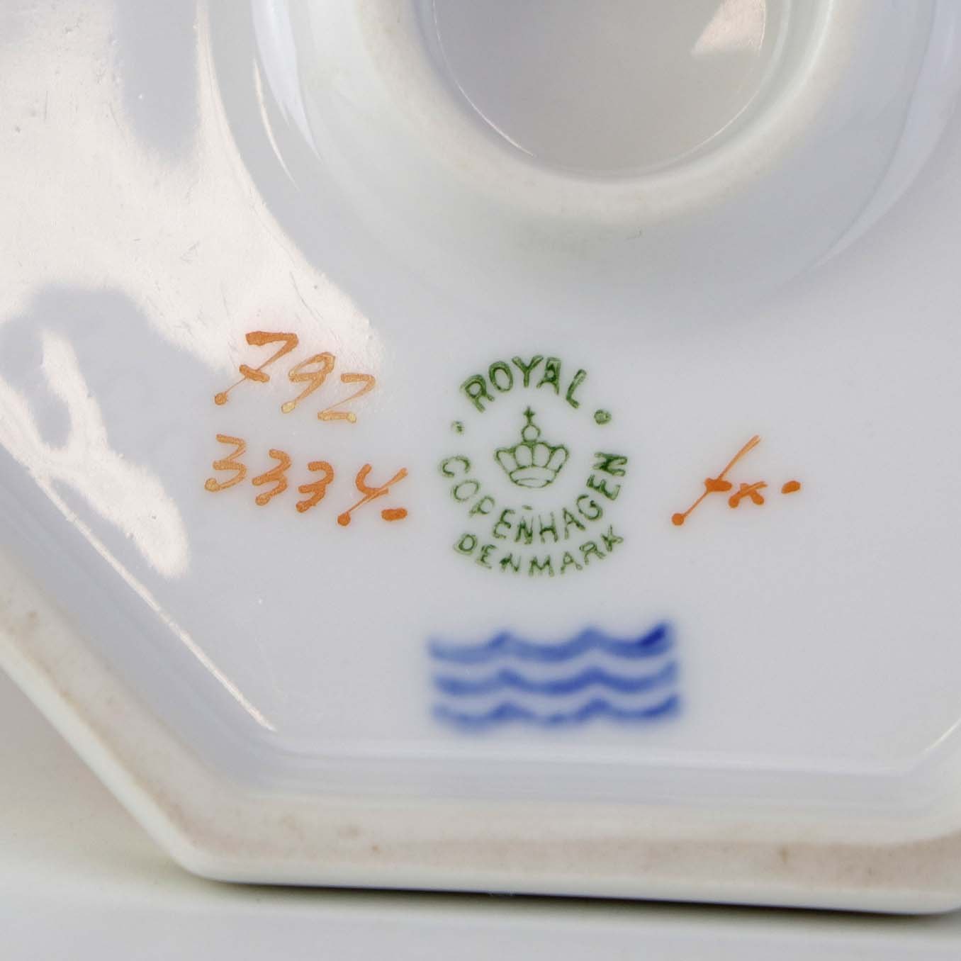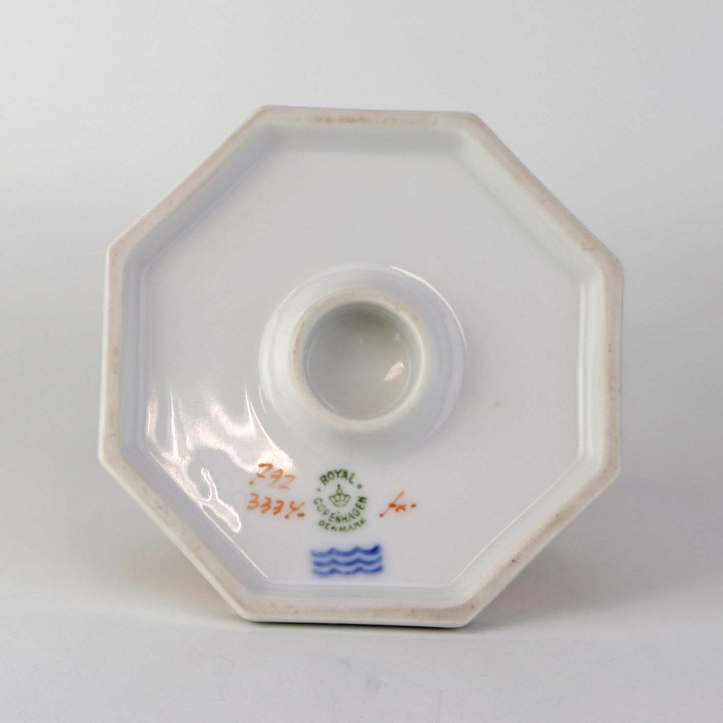 Beskrivelse: Lysestage i kongelig porcelæn fra stellet Jægersborg. Nr. 792/3334