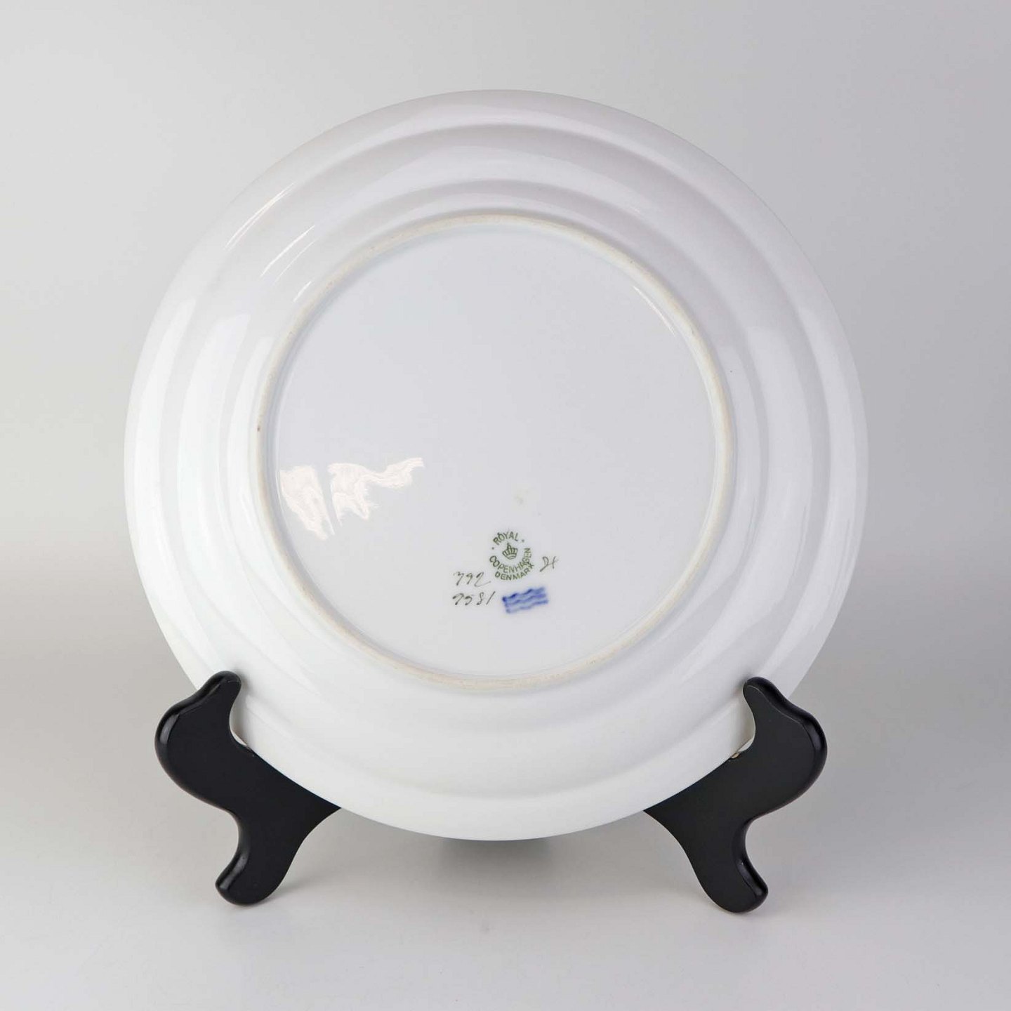 Beskrivelse: Middagstallerken i kongelig porcelæn fra stellet Jægersborg. Nr. 792/9581