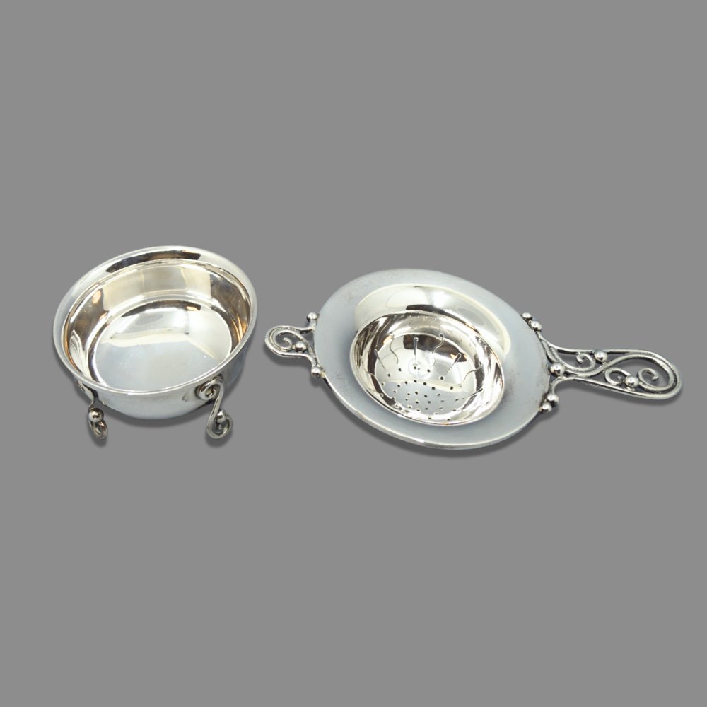 Dansk tesi af sterling sølv, med underskål