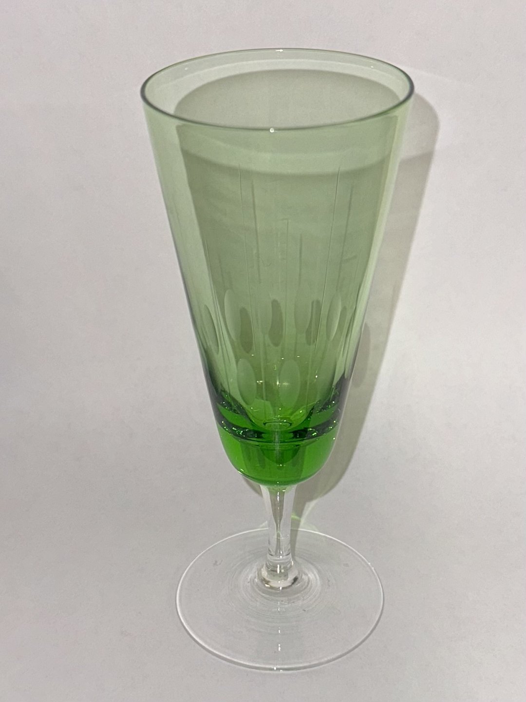 Beskrivelse: “Hanne” vinglas med grøn kunme fra Lyngby Glasværk. I alt haves 4 stk. Sælges samlet for kr. 400,-