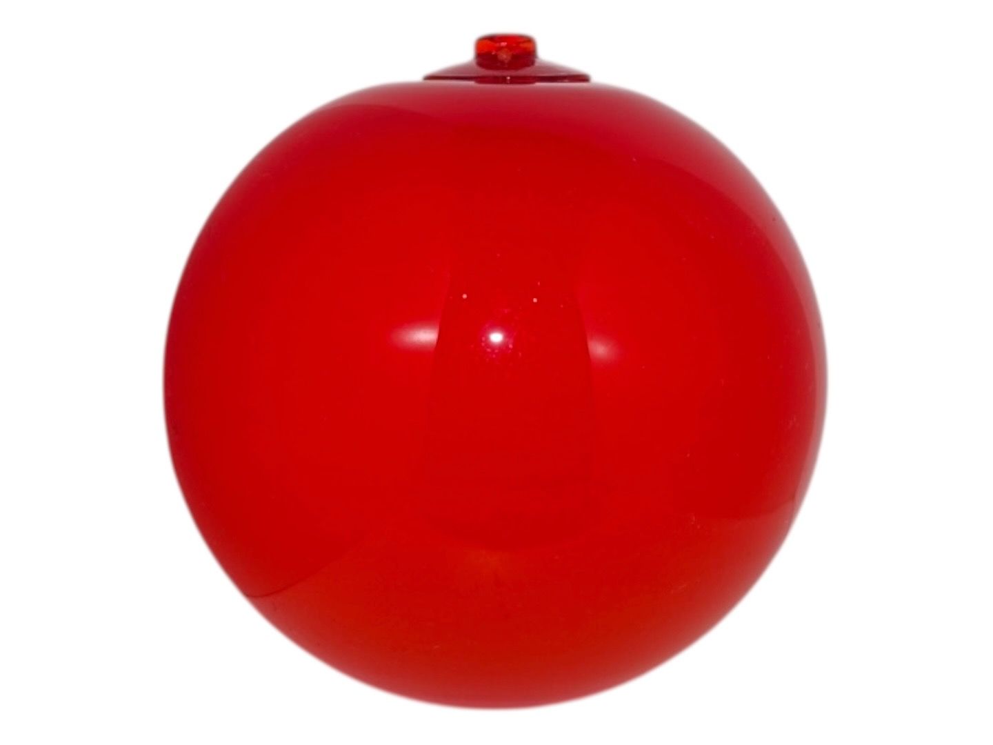 Beskrivelse: Odense Glasværk - Holmegaard stor orangerød kugle med øksen til ophæng eller til at komme i toppen af en vase som en prop.