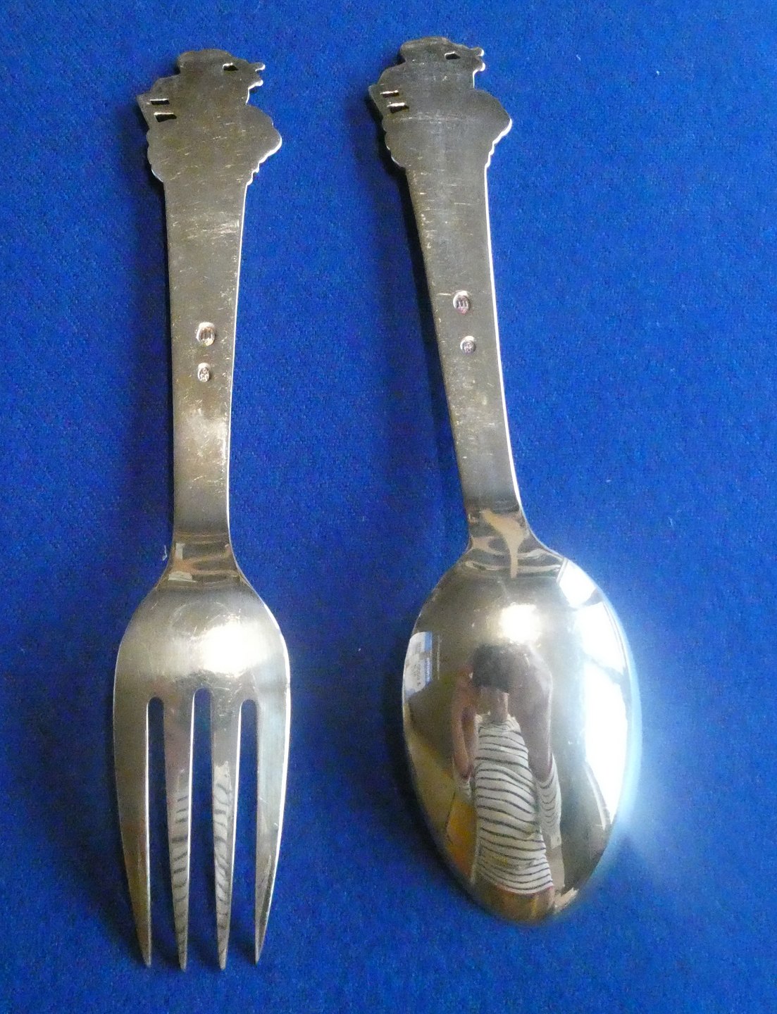 Sæt barneske & barnegaffel i pæn brugt stand uden indgraveringer, og med intakt forgyldning.