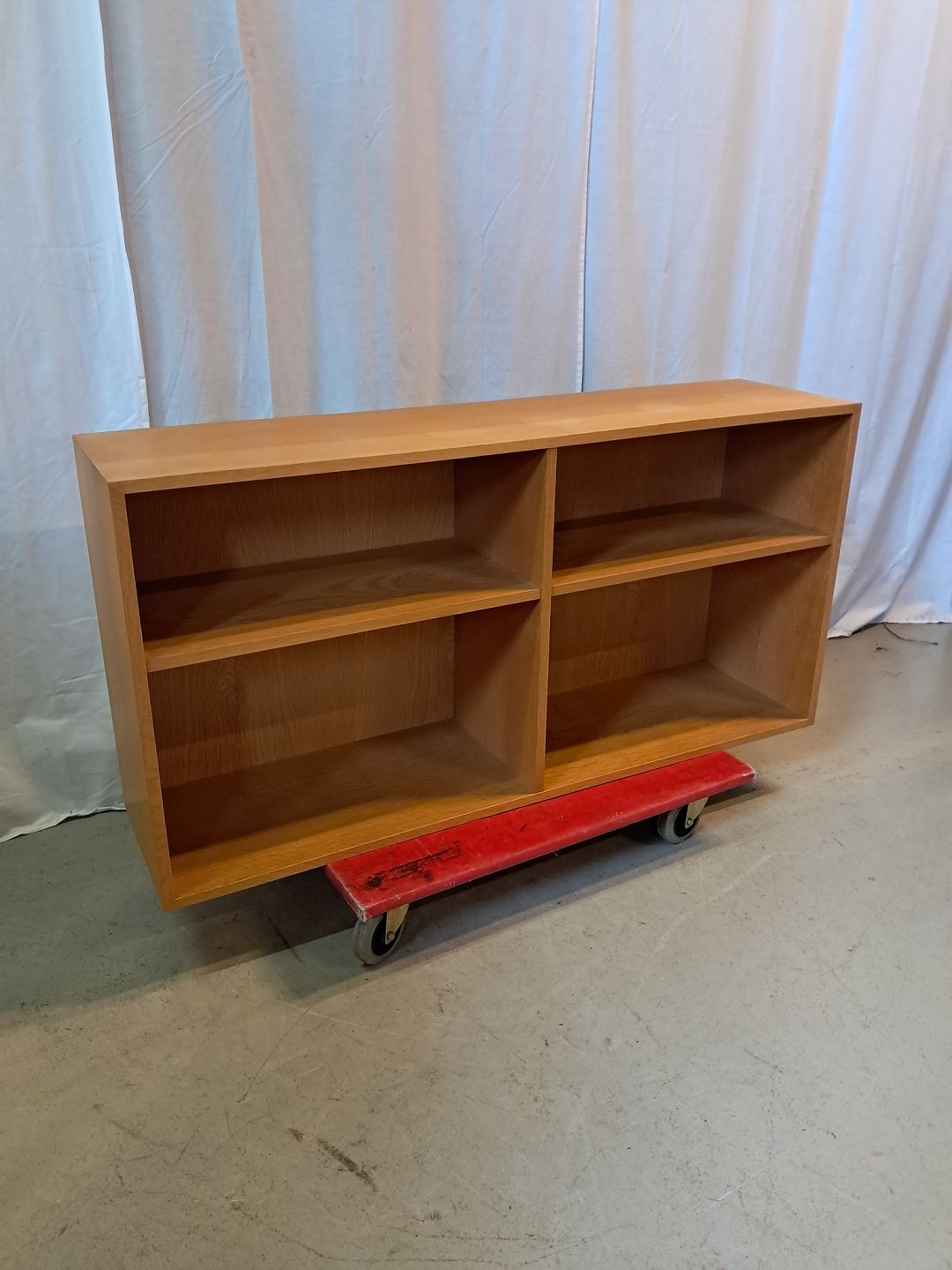Beskrivelse: Reol i fineret egetræ, fra 1990erne.