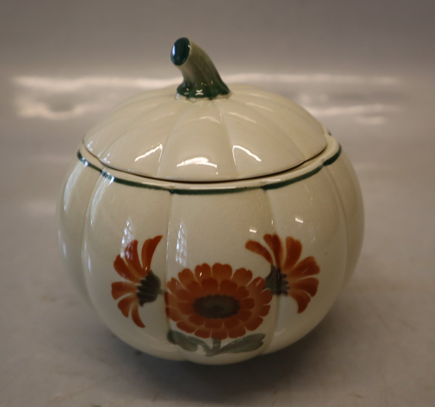 Græskarformet Marmeladeskål 11x12.5cm Royal Copenhagen Aluminia fajance Morgenfrue Stellet Sukkerskål