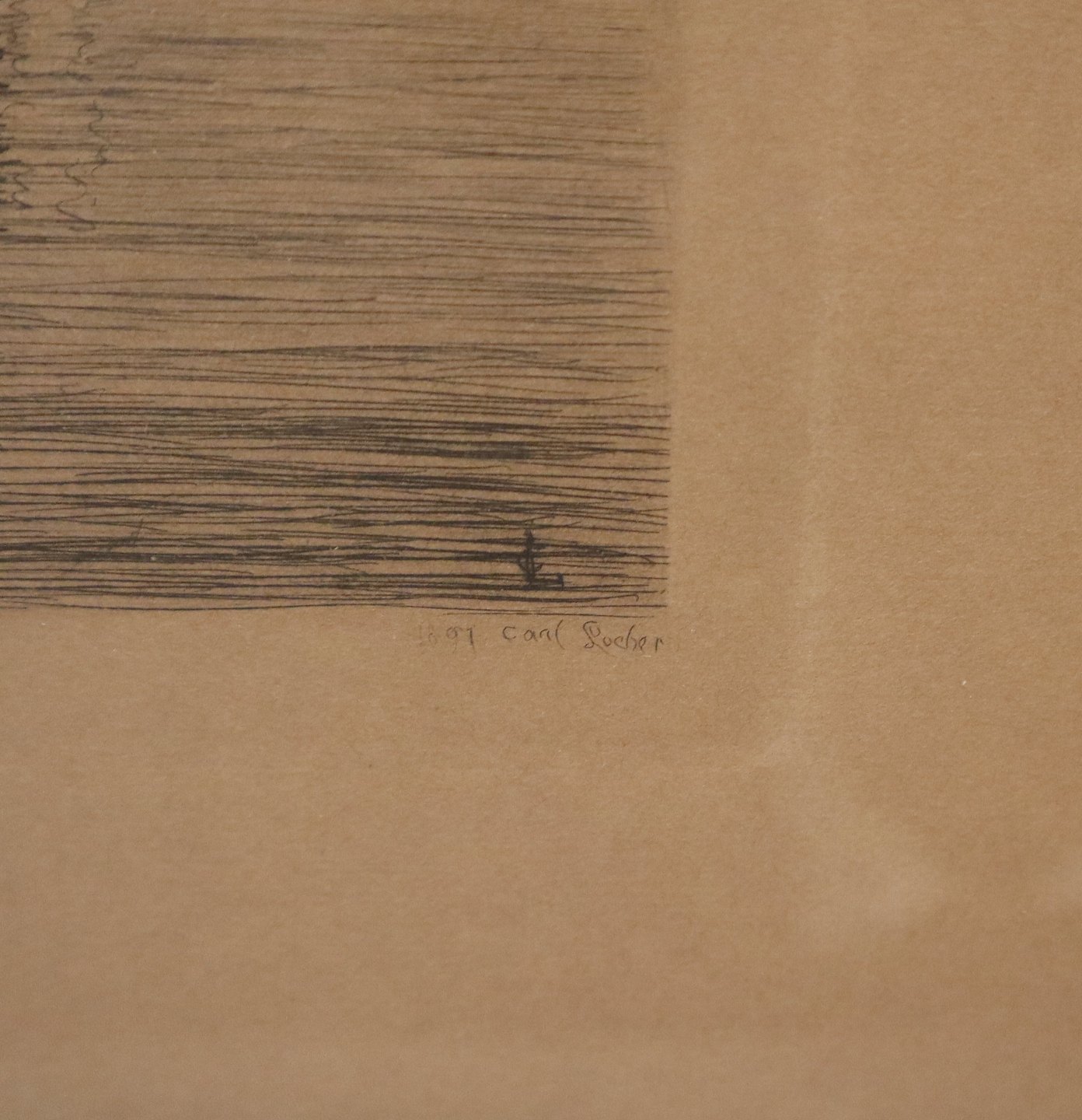Description: Etching: Carl Locher 1907 Marine motivf with sailships 45 x 41 cm including original glass and frame