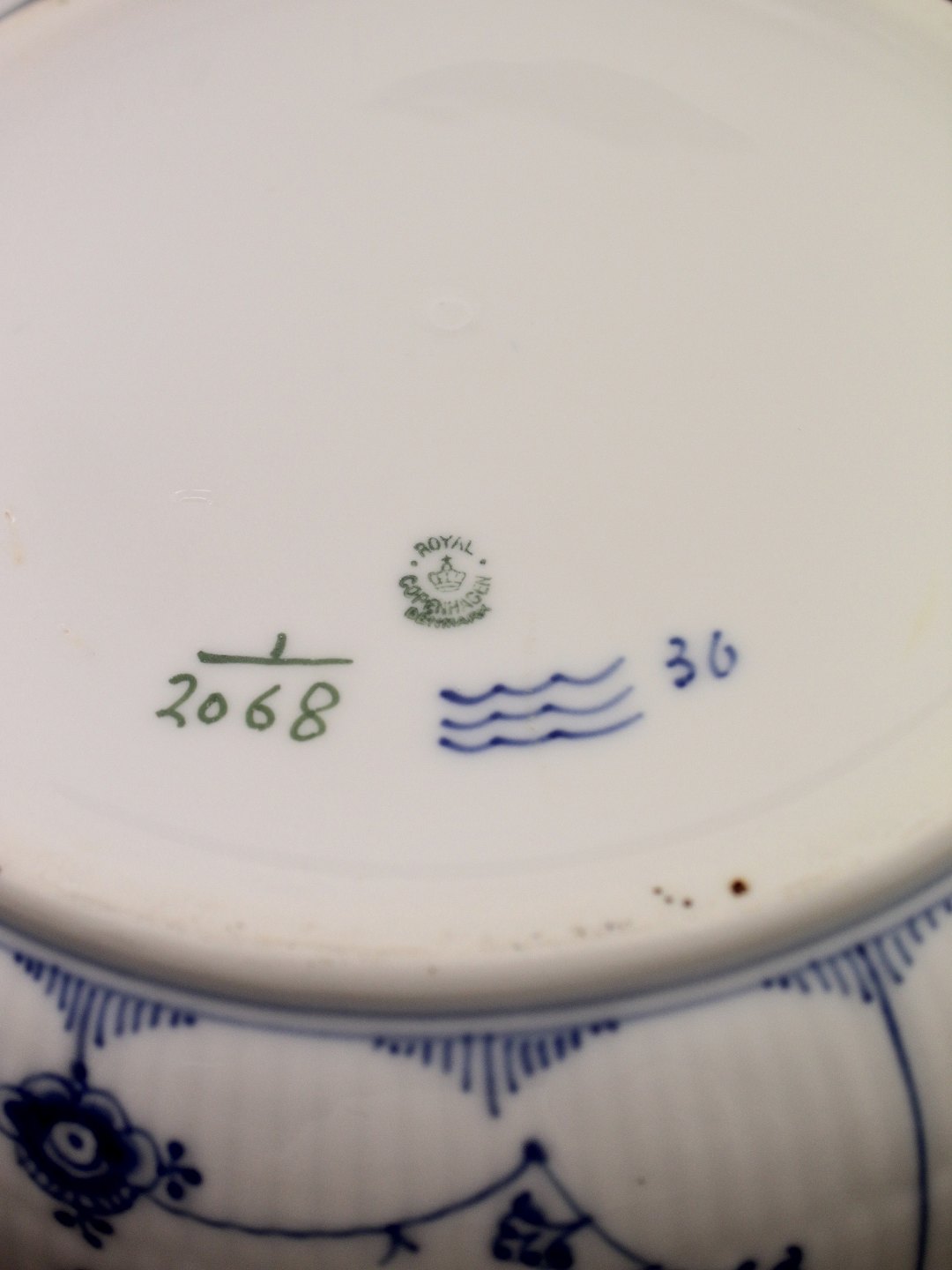 Beskrivelse: Royal Copenhagen musselmalet rund terrin 2868 D. 23 cm. 1.sortering emne nr. 624105