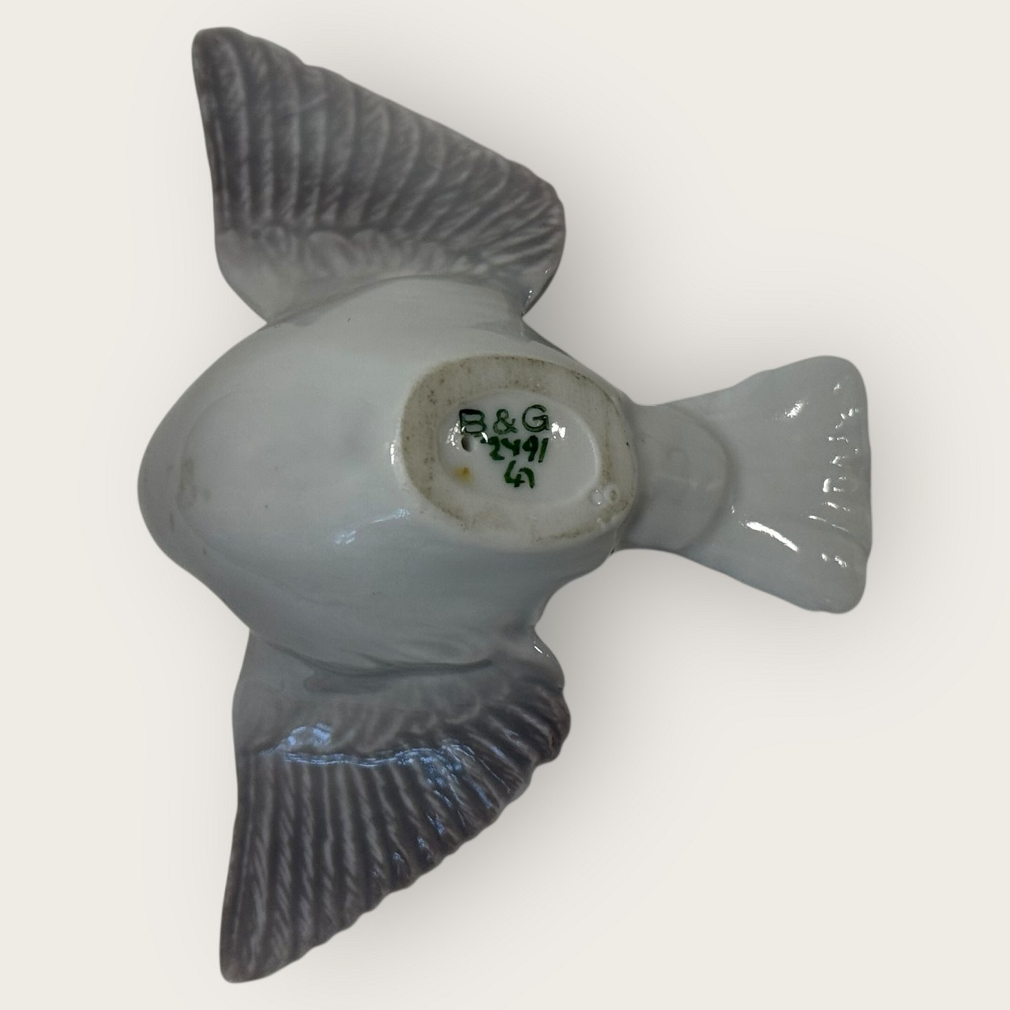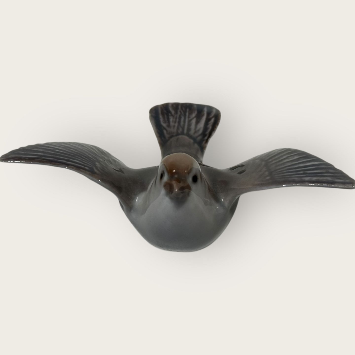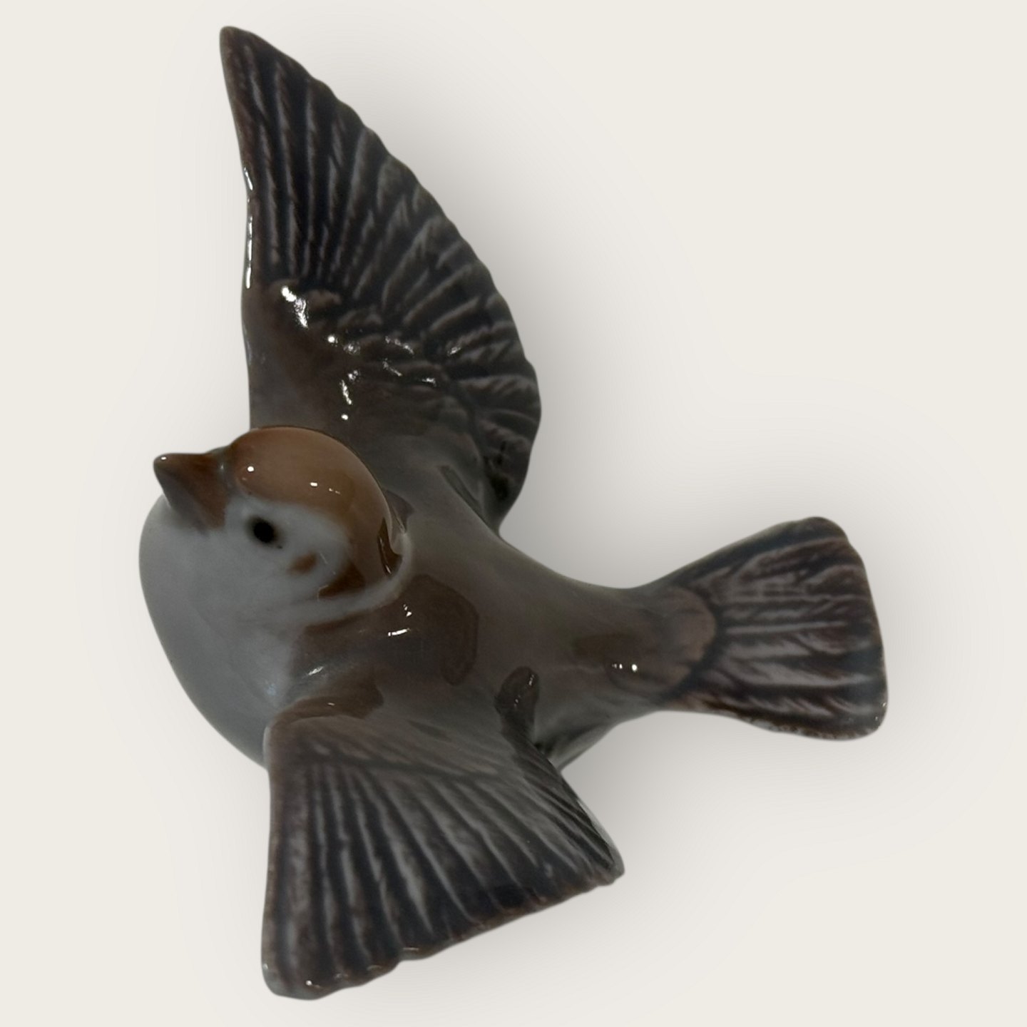 Beskrivelse: Bing & Grøndahl, Spurv med spredte vinger, # 2491, 1. sortering, Mål: ca. 5x10x7cm *Fin stand*