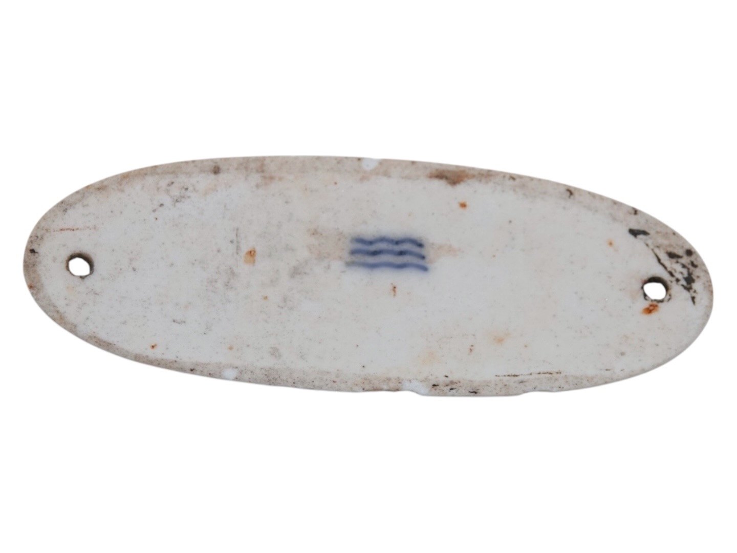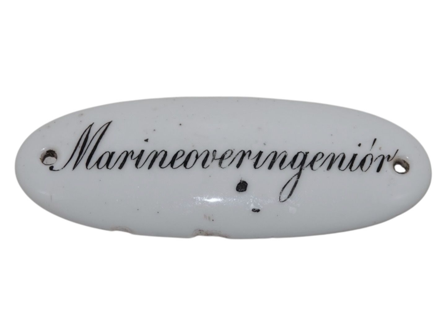 Beskrivelse: Royal Copenhagen hvidt skilt med teksten "Marineoveringenør".