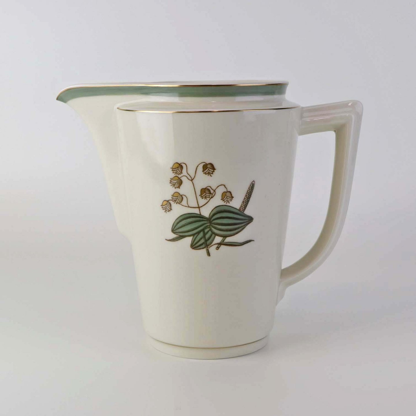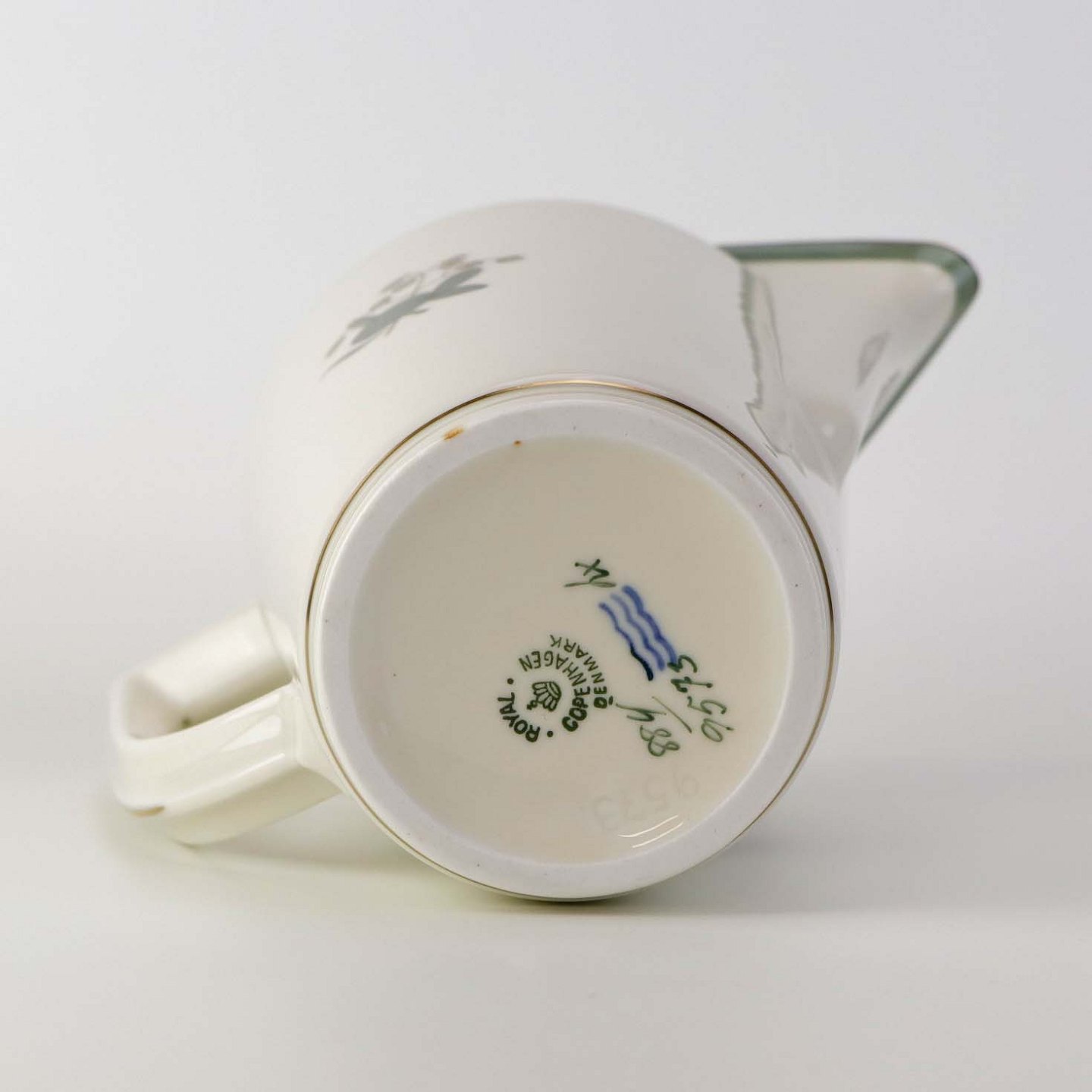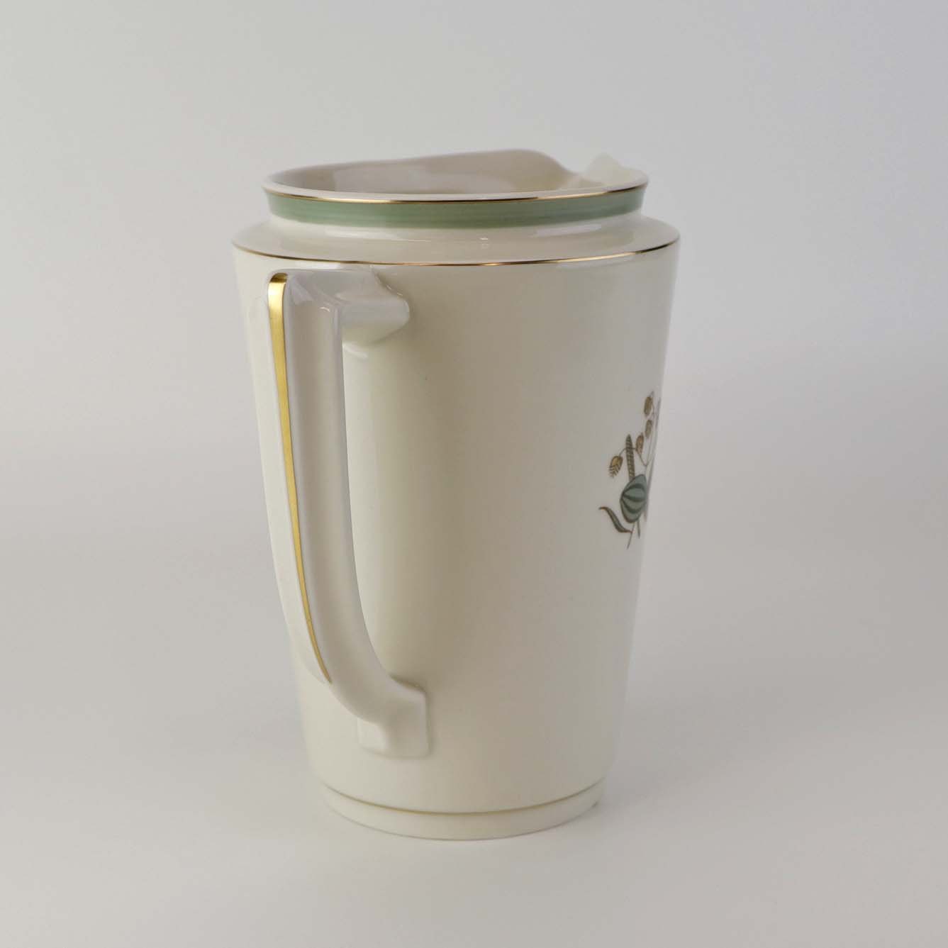 Beskrivelse: Kande til vand i kongelig porcelæn fra stellet Hjertegræs. Nr. 884/9573