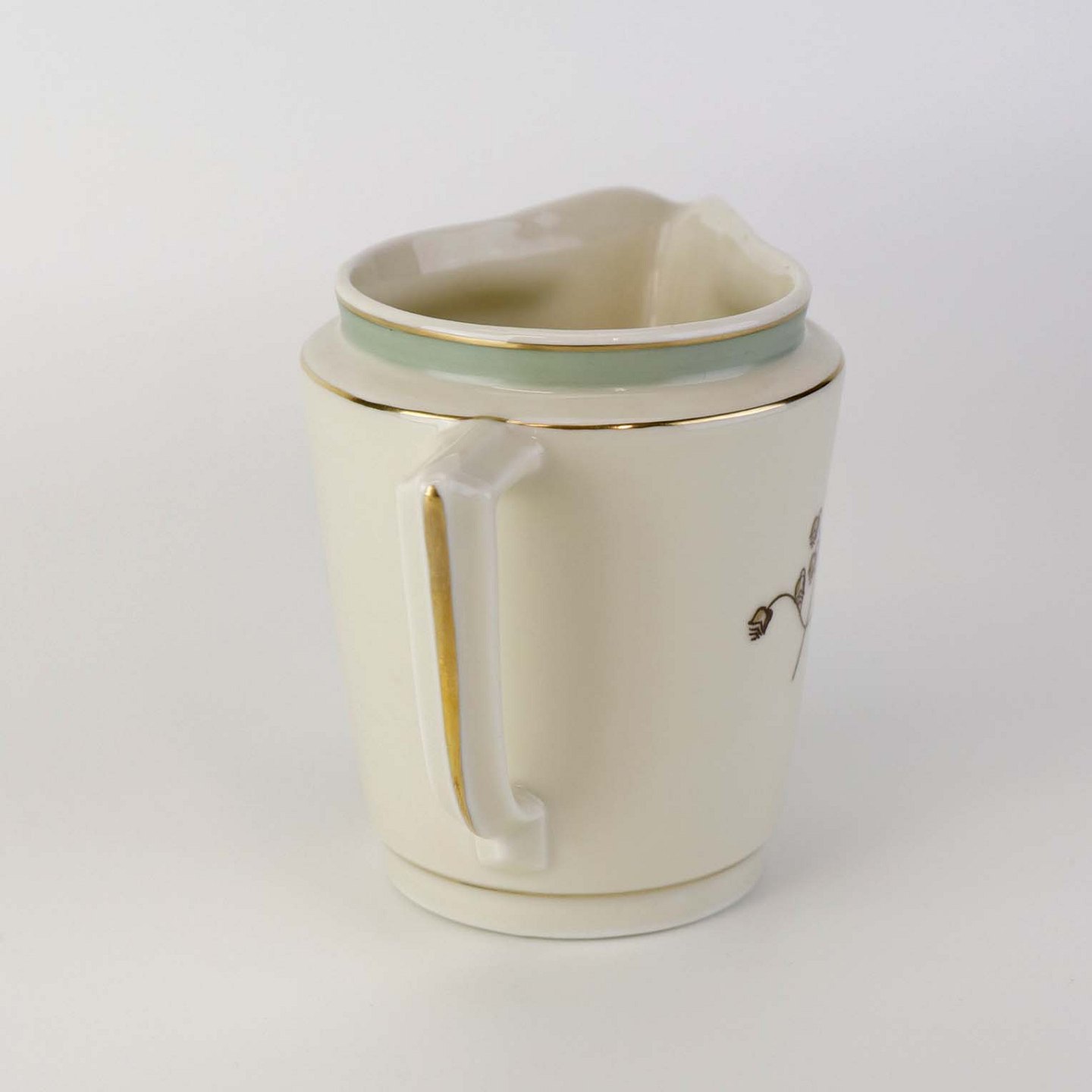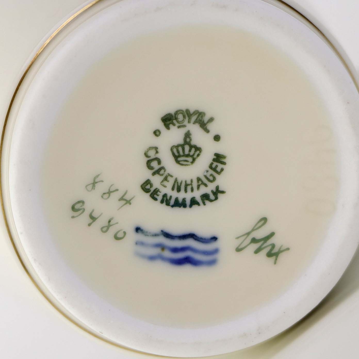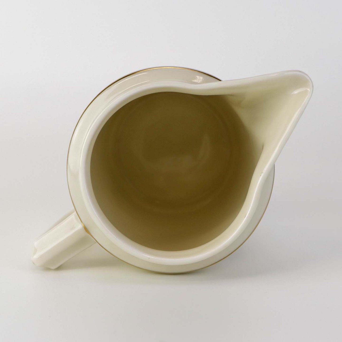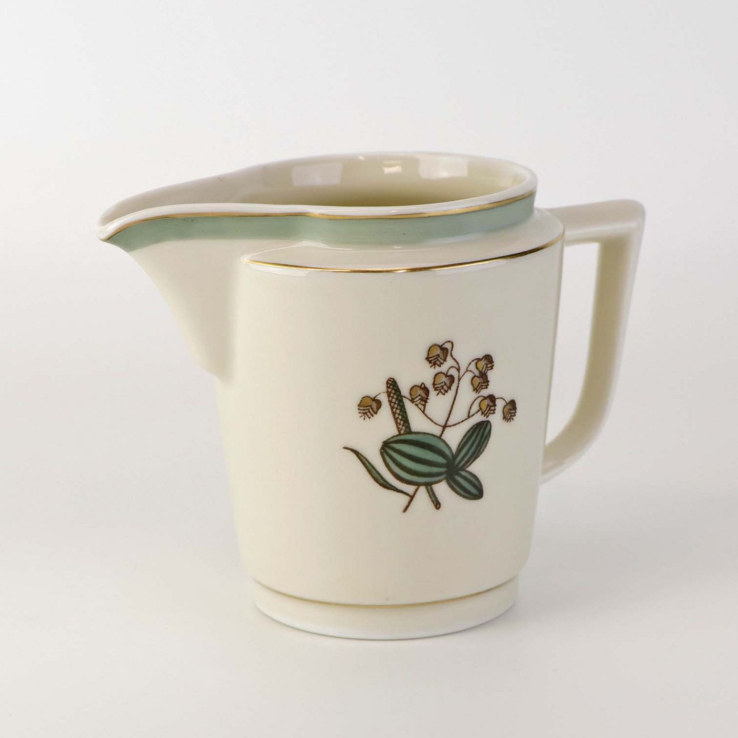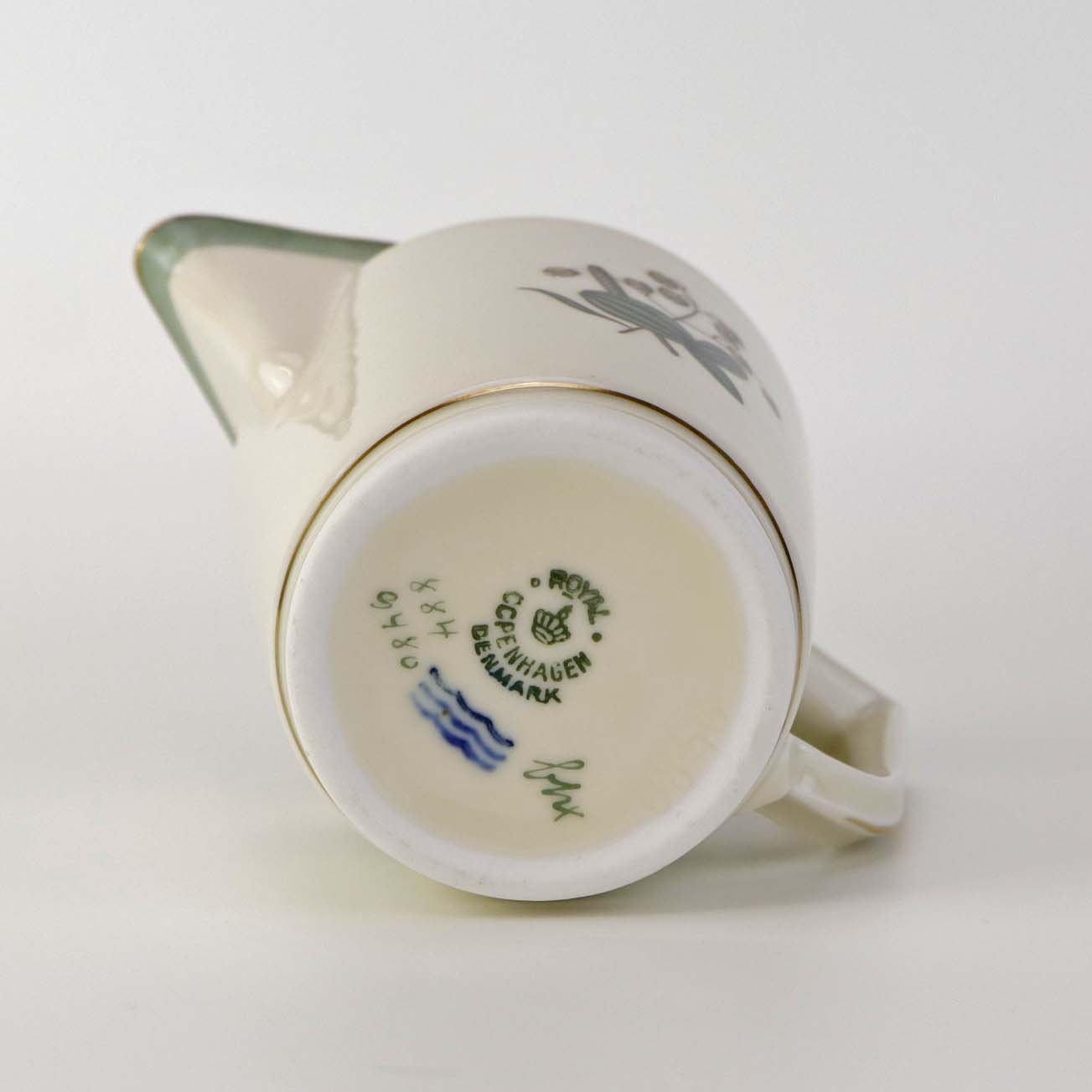 Beskrivelse: Kande til fløde i kongelig porcelæn fra stellet Hjertegræs. Nr. 884/9480