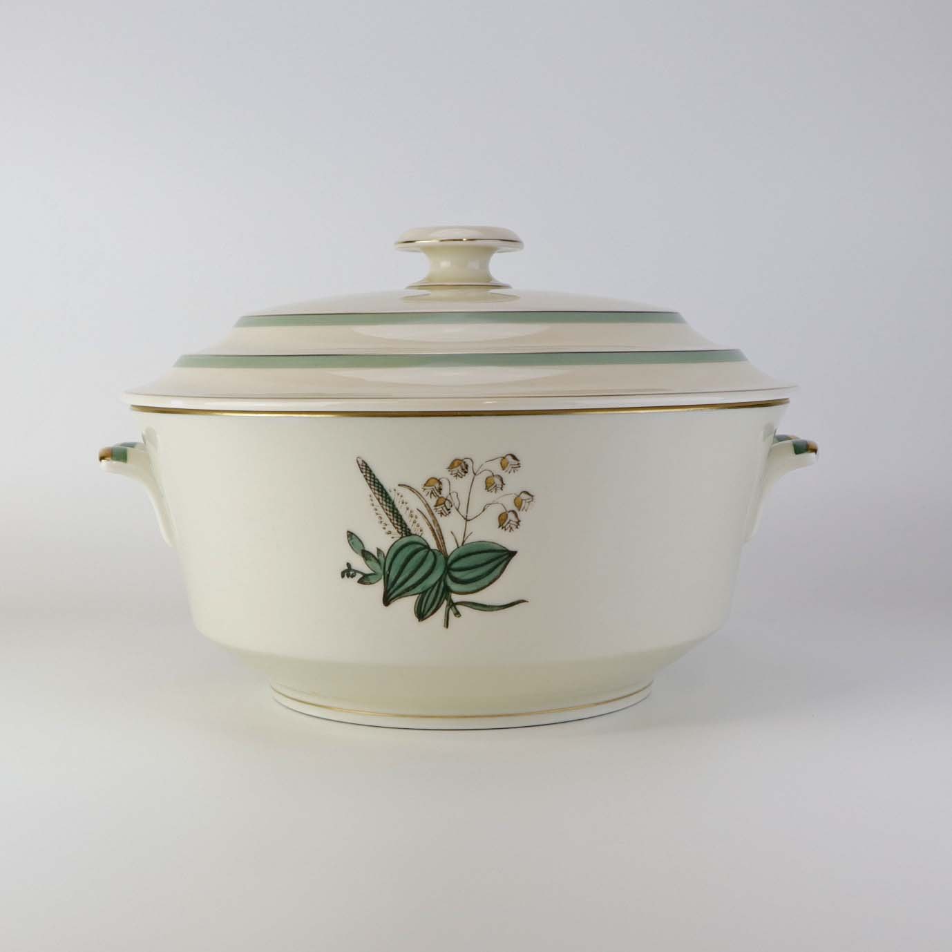 Beskrivelse: Suppeterrin i kongelig porcelæn fra stellet Hjertegræs. Nr. 884/9576