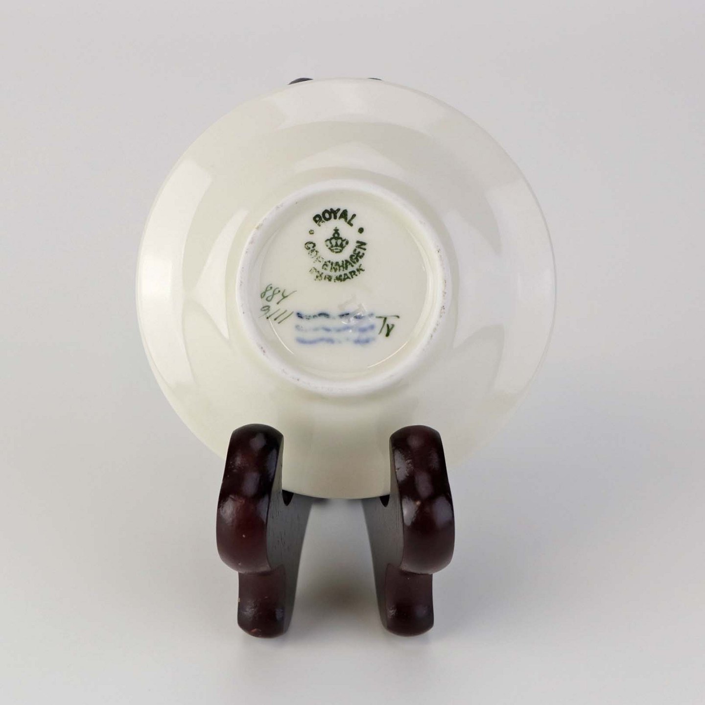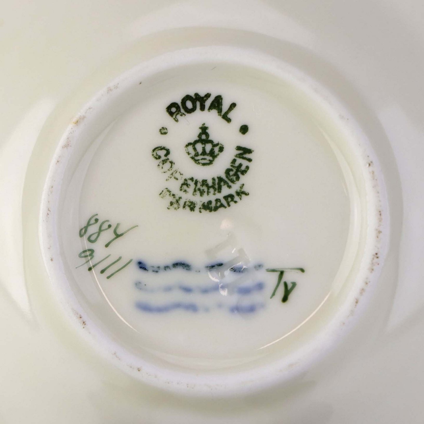 Beskrivelse: Lille skål til kaviar i kongelig porcelæn fra stellet Hjertegræs. Nr. 884/9111