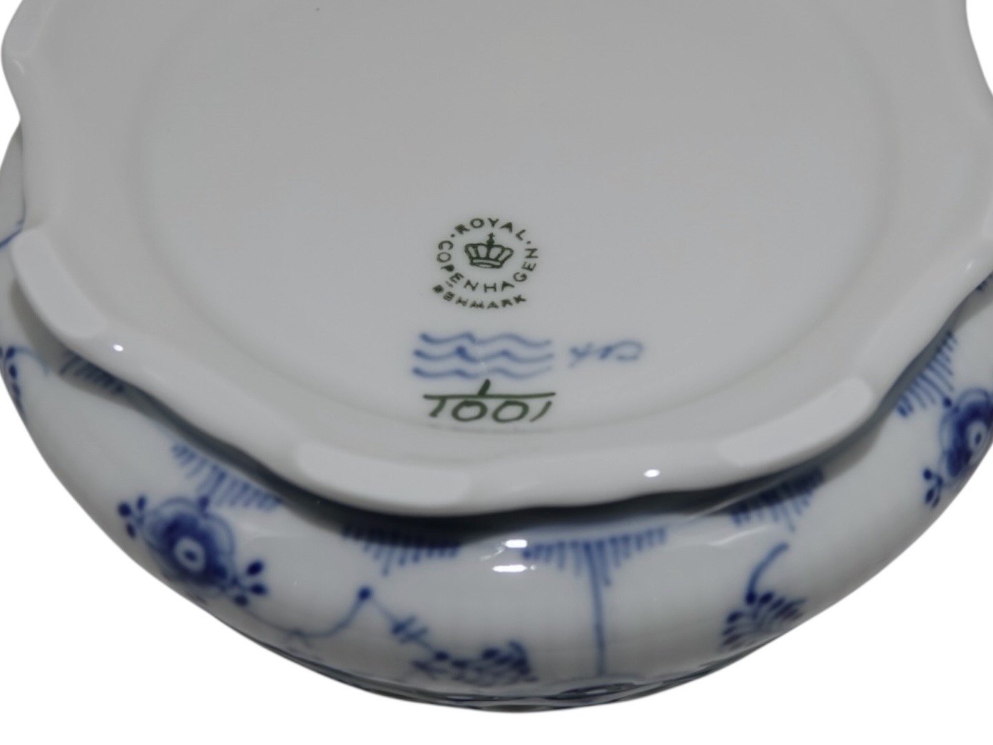 Beskrivelse: Royal Copenhagen Musselmalet Helblonde, asiet med opdeling.
