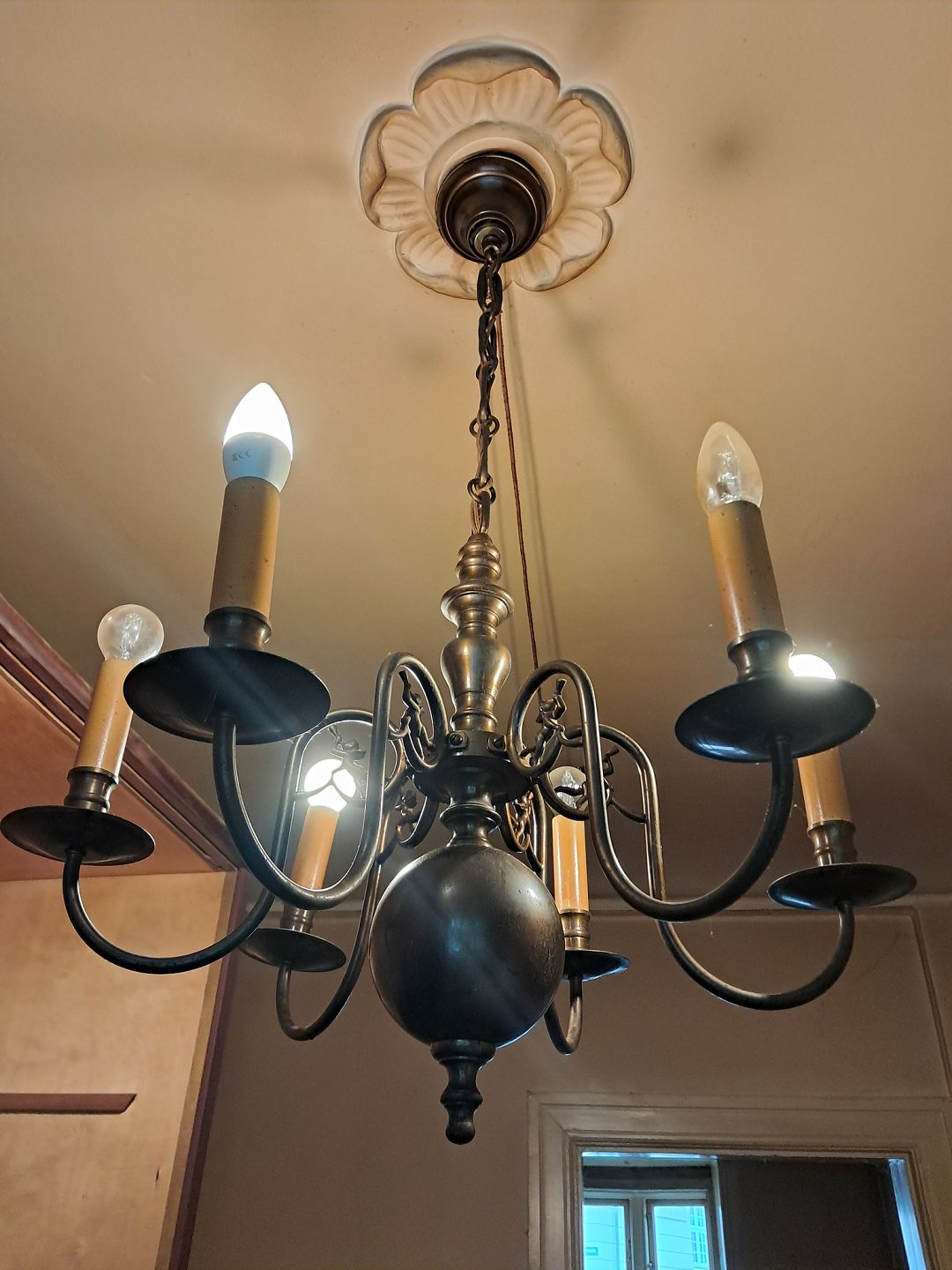 : Kirkekrone i bruneret messing, fra 1930erne.