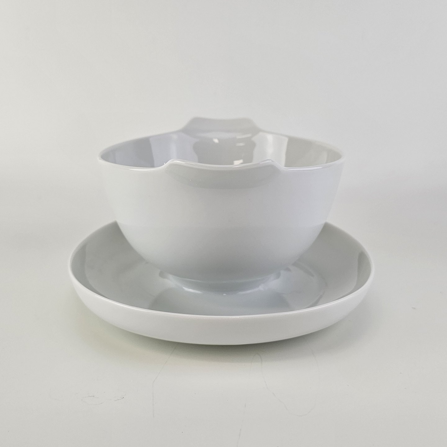 Beskrivelse: Sovsekande i porcelæn fra stellet Hvid Koppel