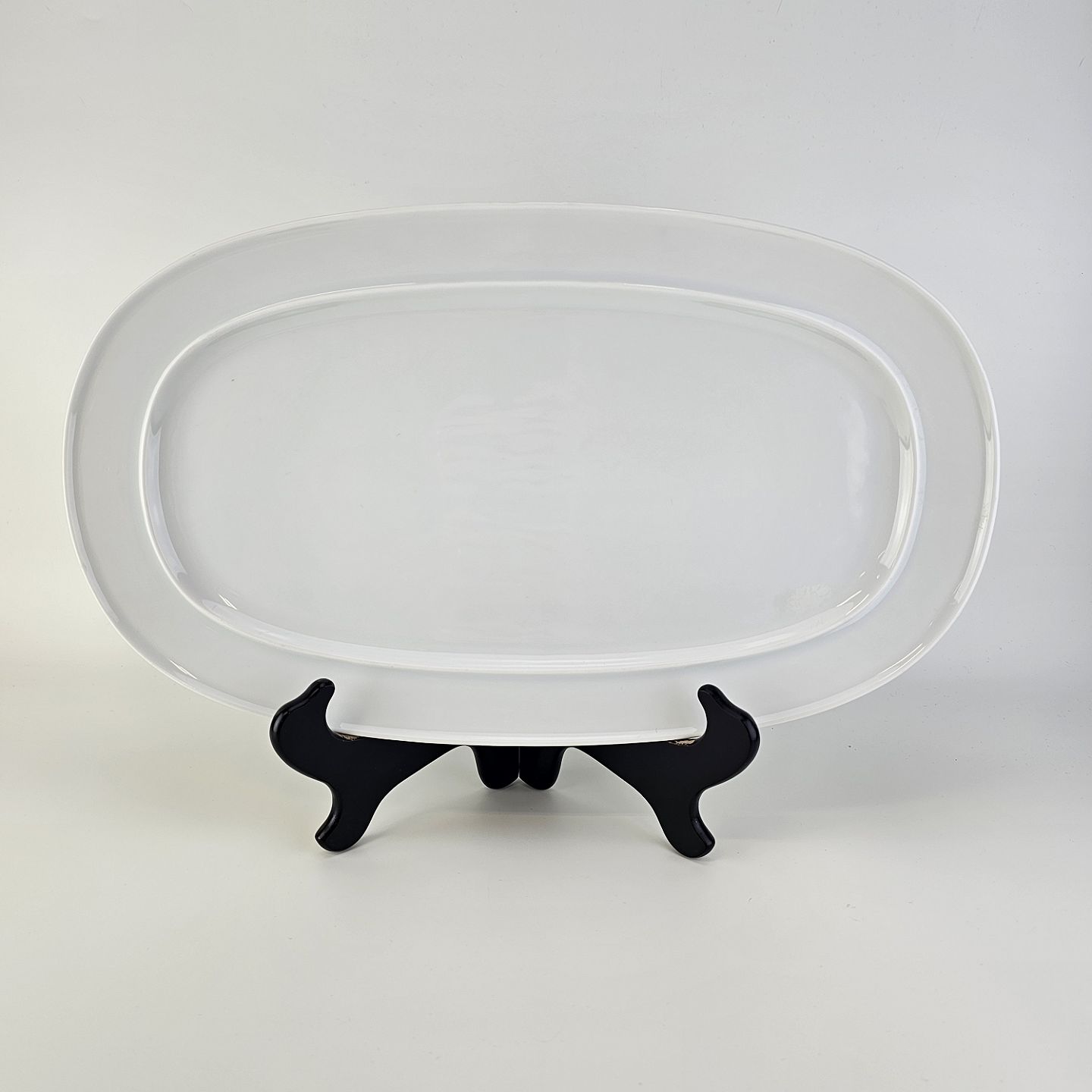 Beskrivelse: Rektangulært fad med runde hjørner i porcelæn fra stellet Hvid Koppel
