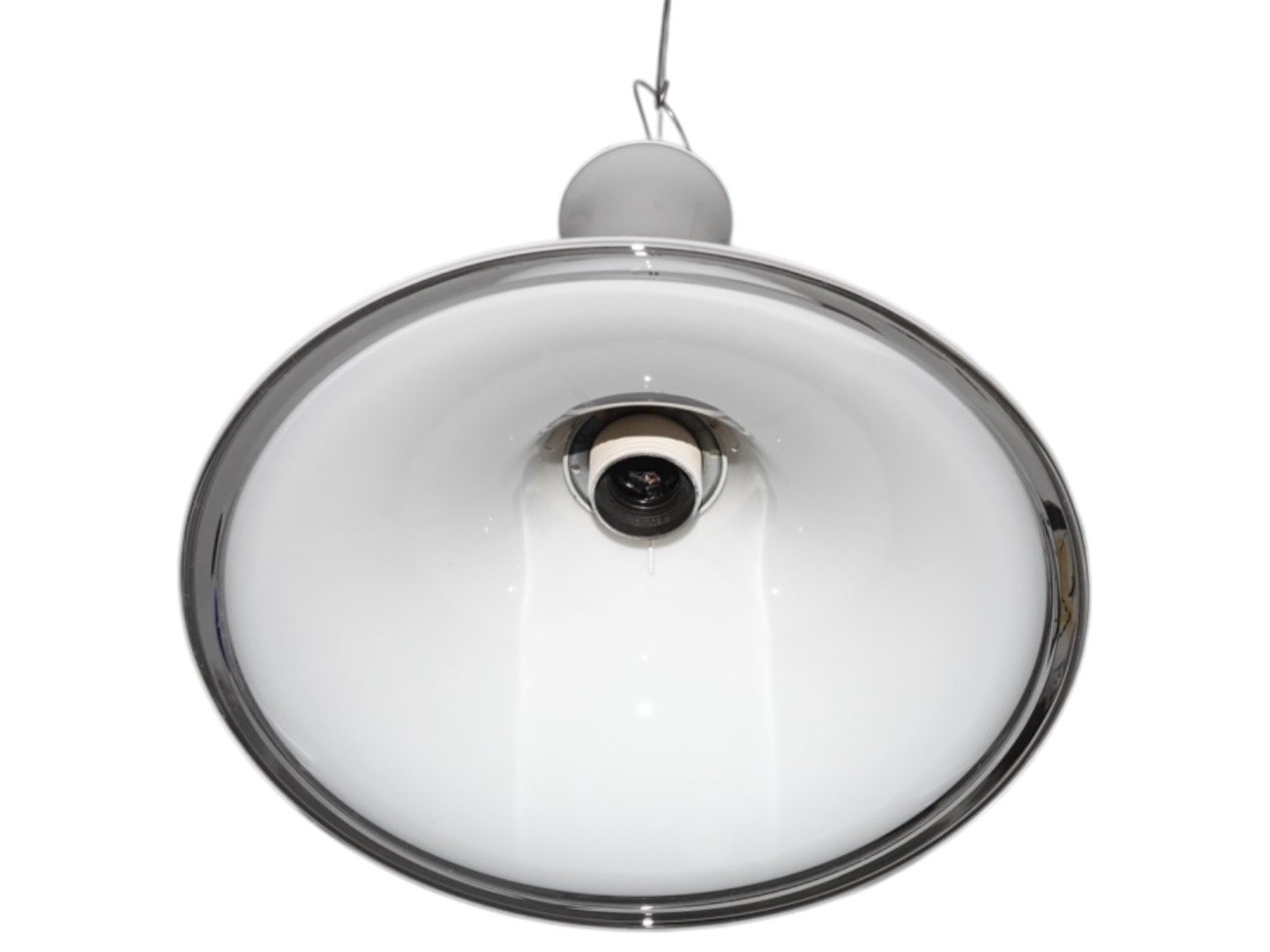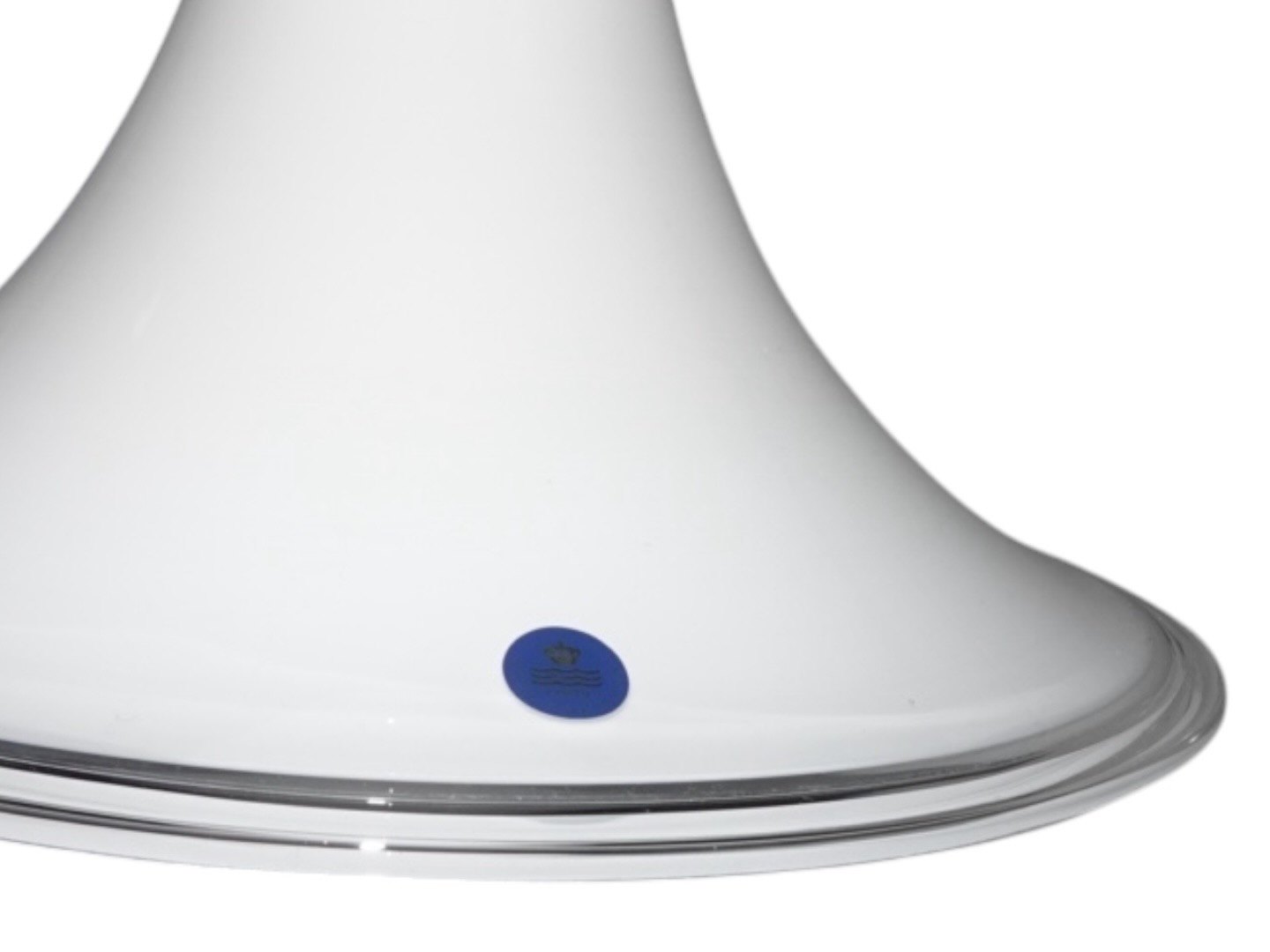 Beskrivelse: Holmegaard / Royal Copenhagen, Etude pendel i hvidt glas med den yderste kant med klart glas.