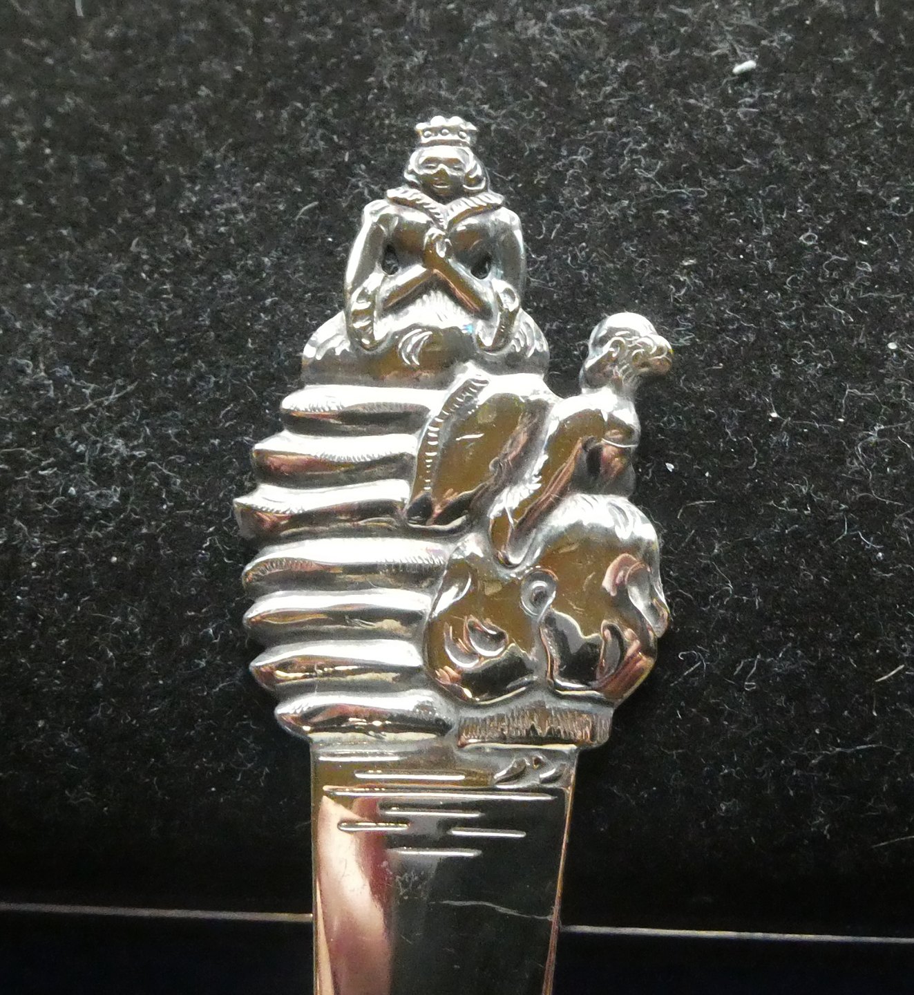 Description: Fairy tales Danish child's cutlery kids cutlery in three Towers gold-plated silver with The Princess and the Pea.