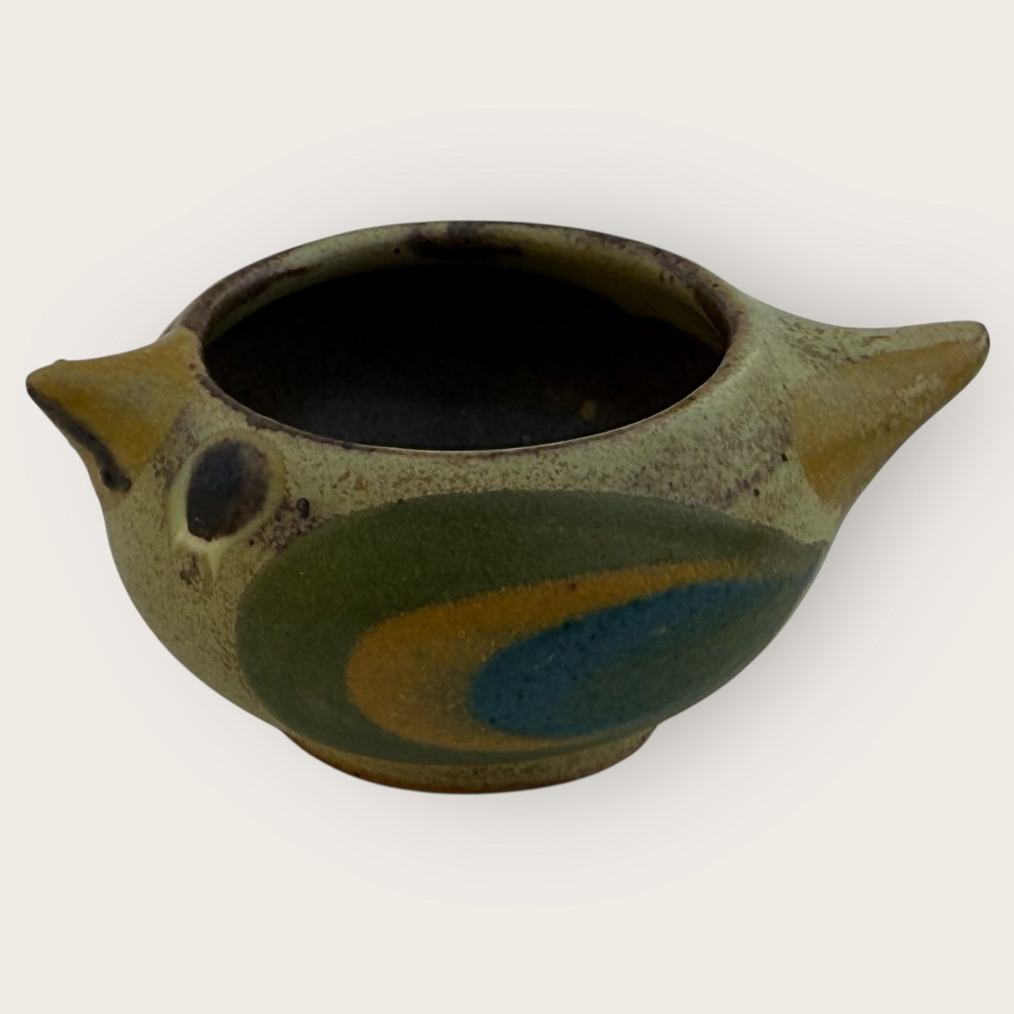 Beskrivelse: Dybdahl, keramik, fugl, Æggebæger, Saltkar, 8,5cm bred, 3cm høj * Et meget lille afskrab på næbet (se foto) ellers pæn stand*