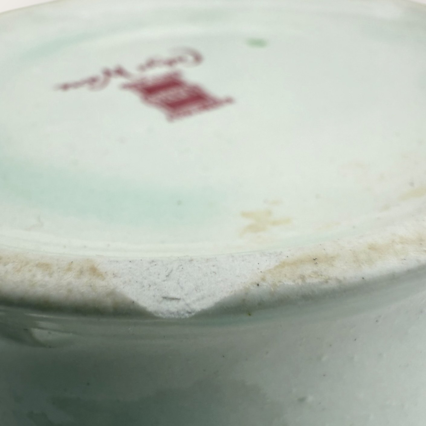 Beskrivelse: Adams Calyx Ware, Chelsea Sprays red, Kande, 14,5cm høj, bredde 17cm, *Med lille hak under bunden (se foto) ellers pæn stand *