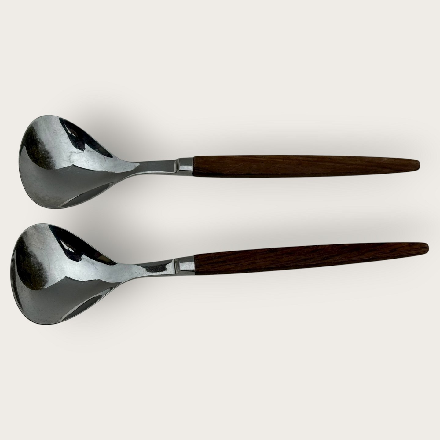 : Raadvad, salatsæt i teaktræ og stål fra 1960'erne, 22cm langt *pæn brugt stand*