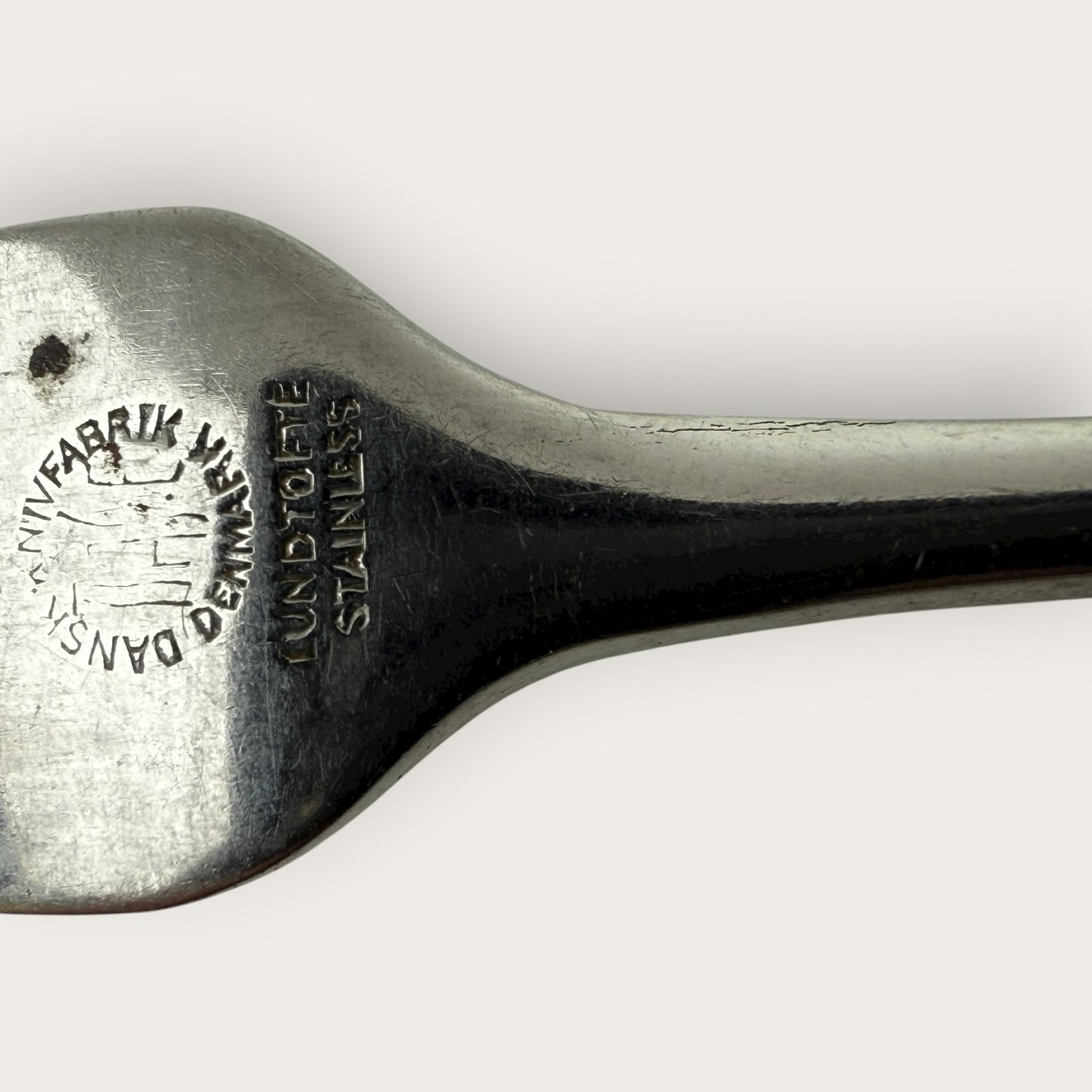 Beskrivelse: Lundtofte, pålægsgaffel i teaktræ og rustfrit stål fra 1960'erne, 14,5cm lang * pæn brugt stand*