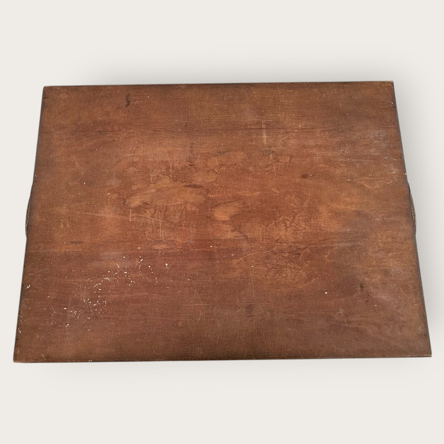 : Bakke med metalhåndtag og broderi under glasplade, 35x47cm (uden hanke) *pæn stand*