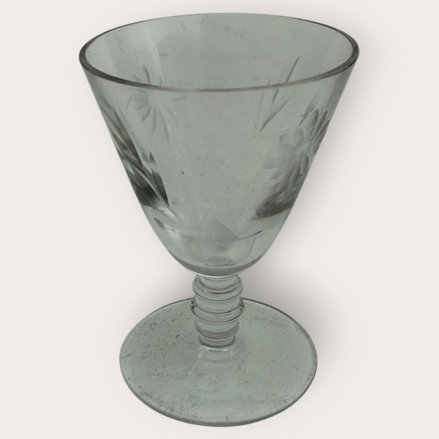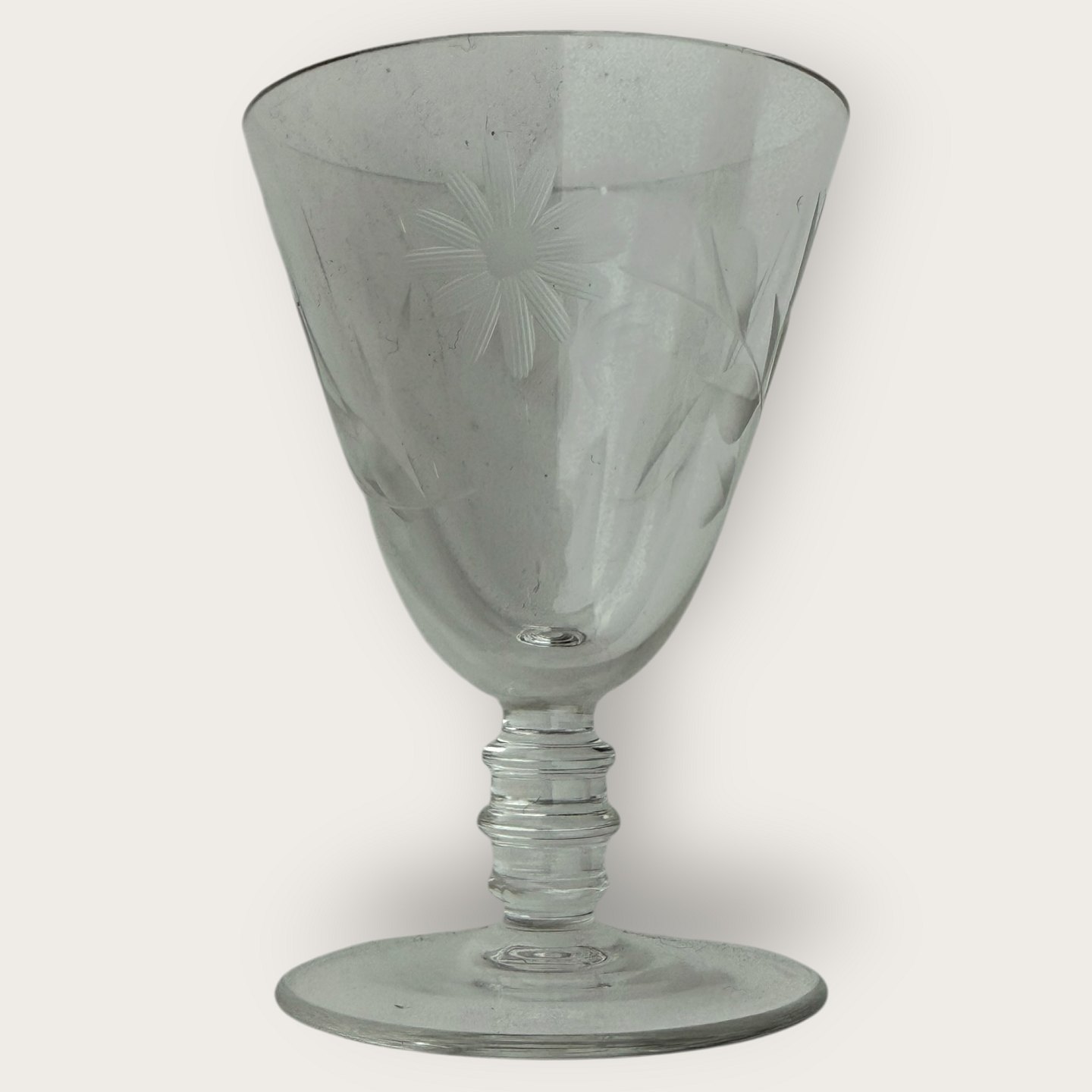 : Portvinsglas med blomsterslibninger, 8cm højt, 6cm i diameter *pæn stand*