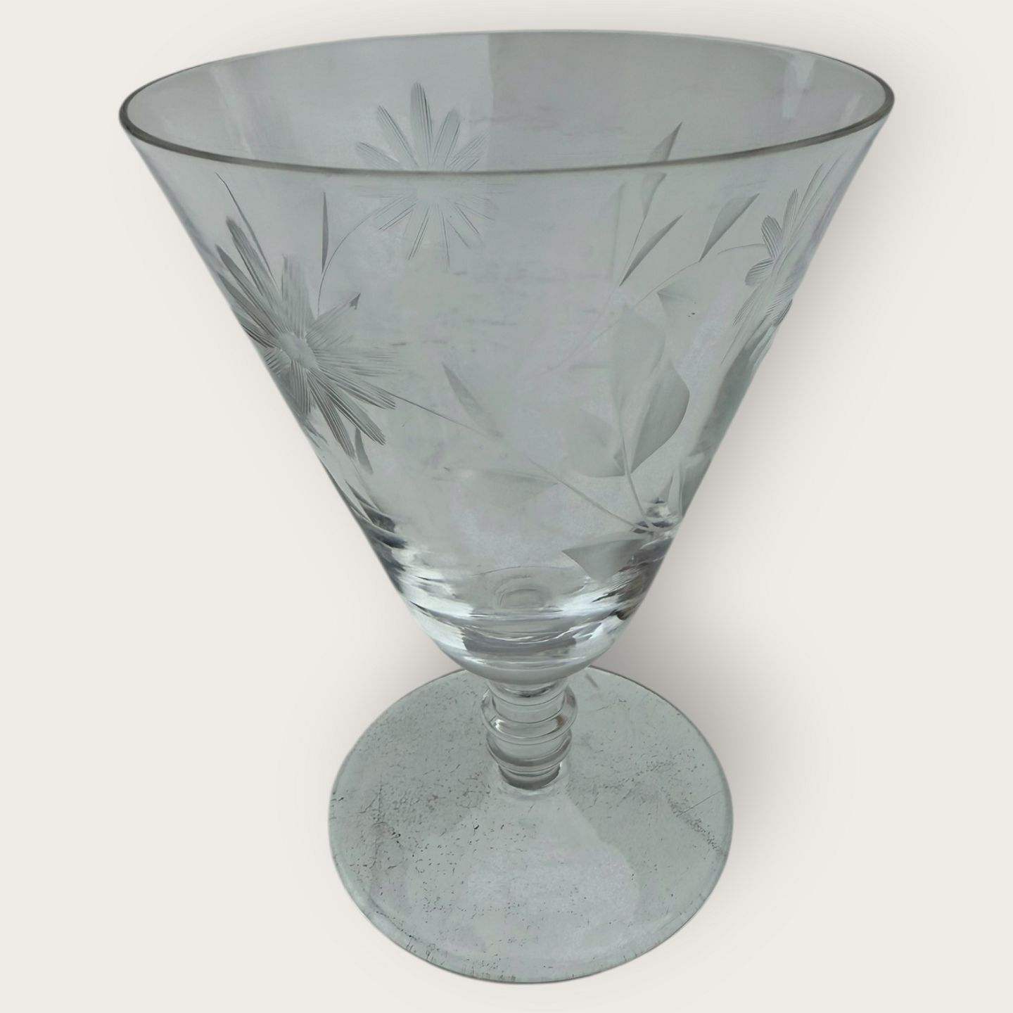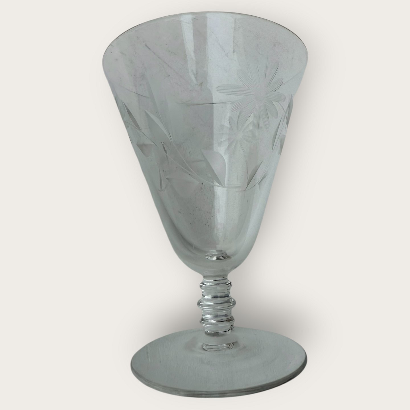 : Rødvinsglas med blomsterslibninger, Højde 11,7cm, diameter 9cm *pæn stand*