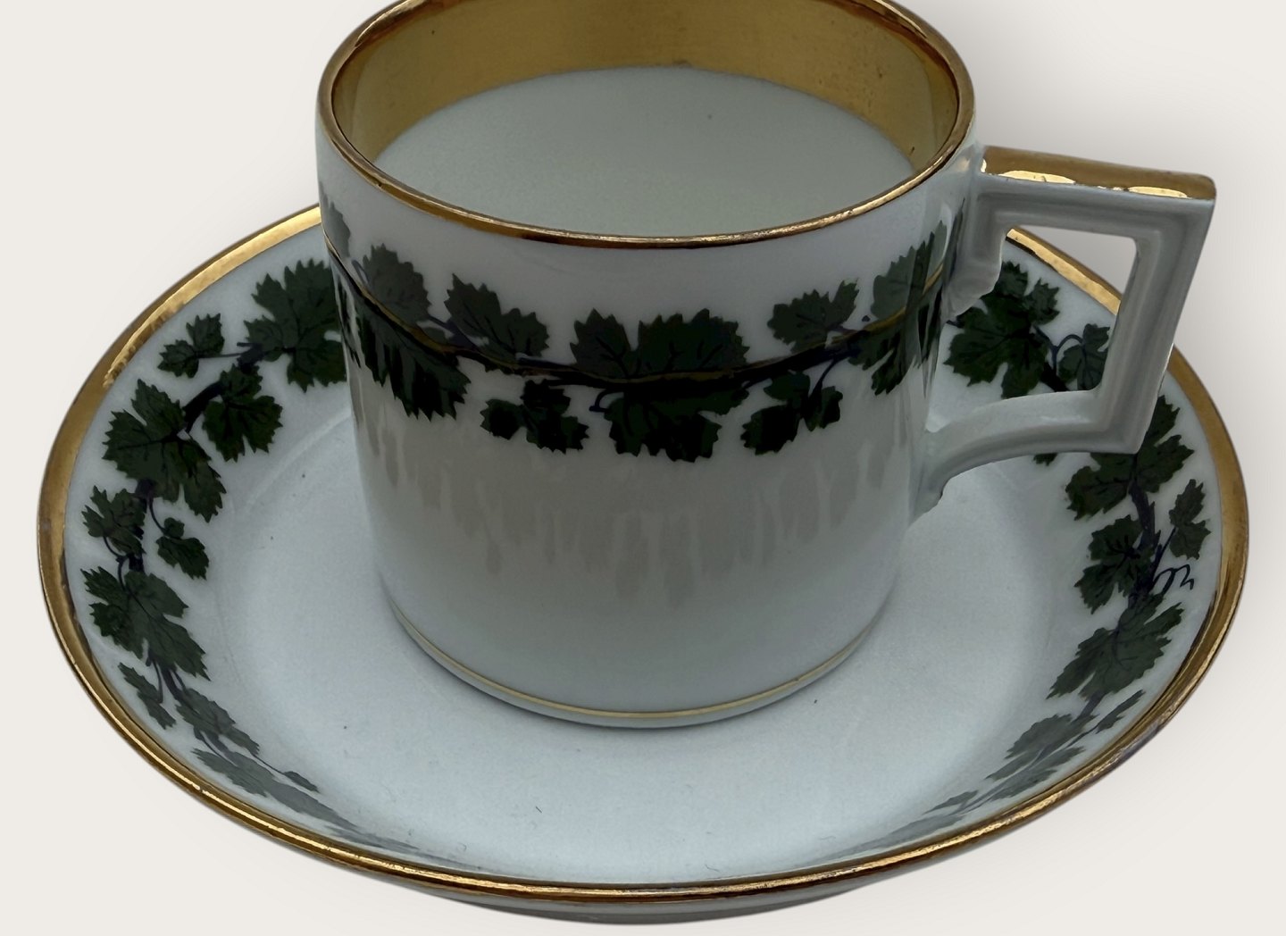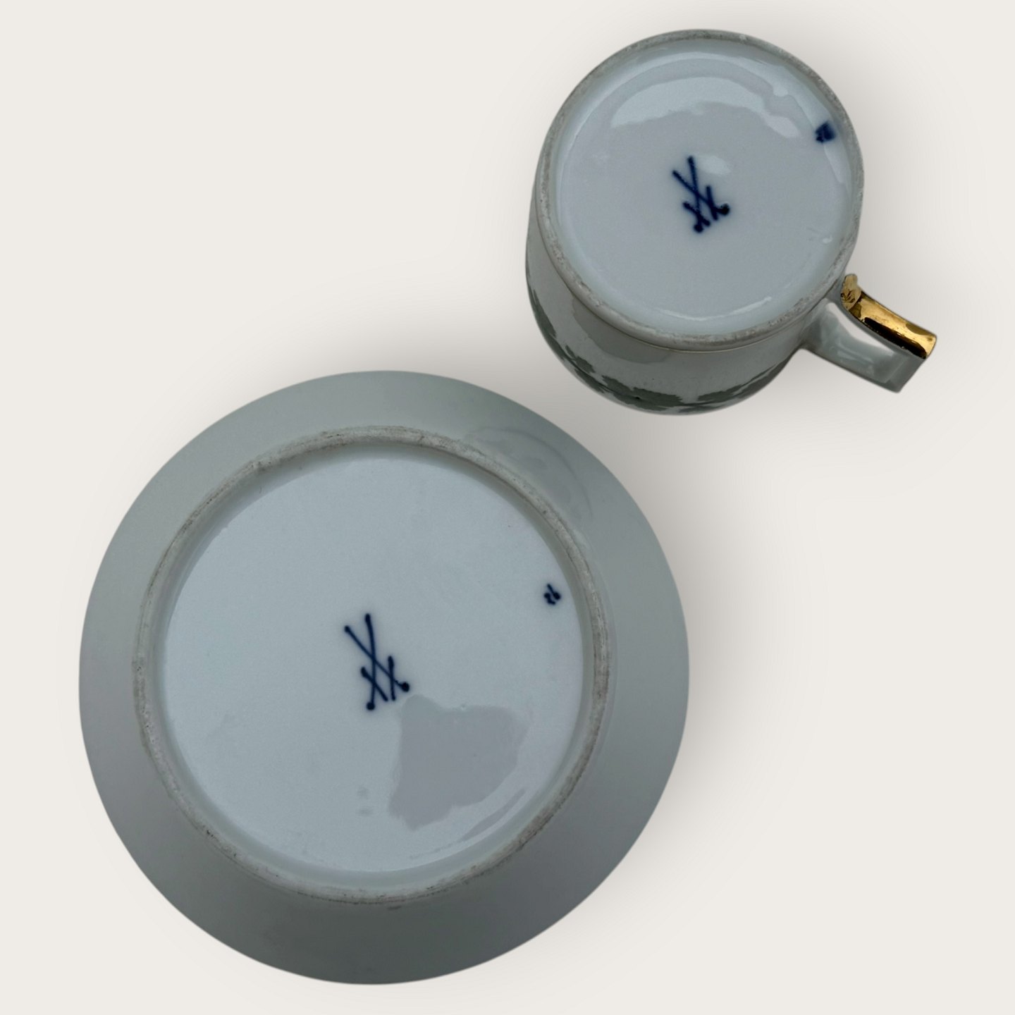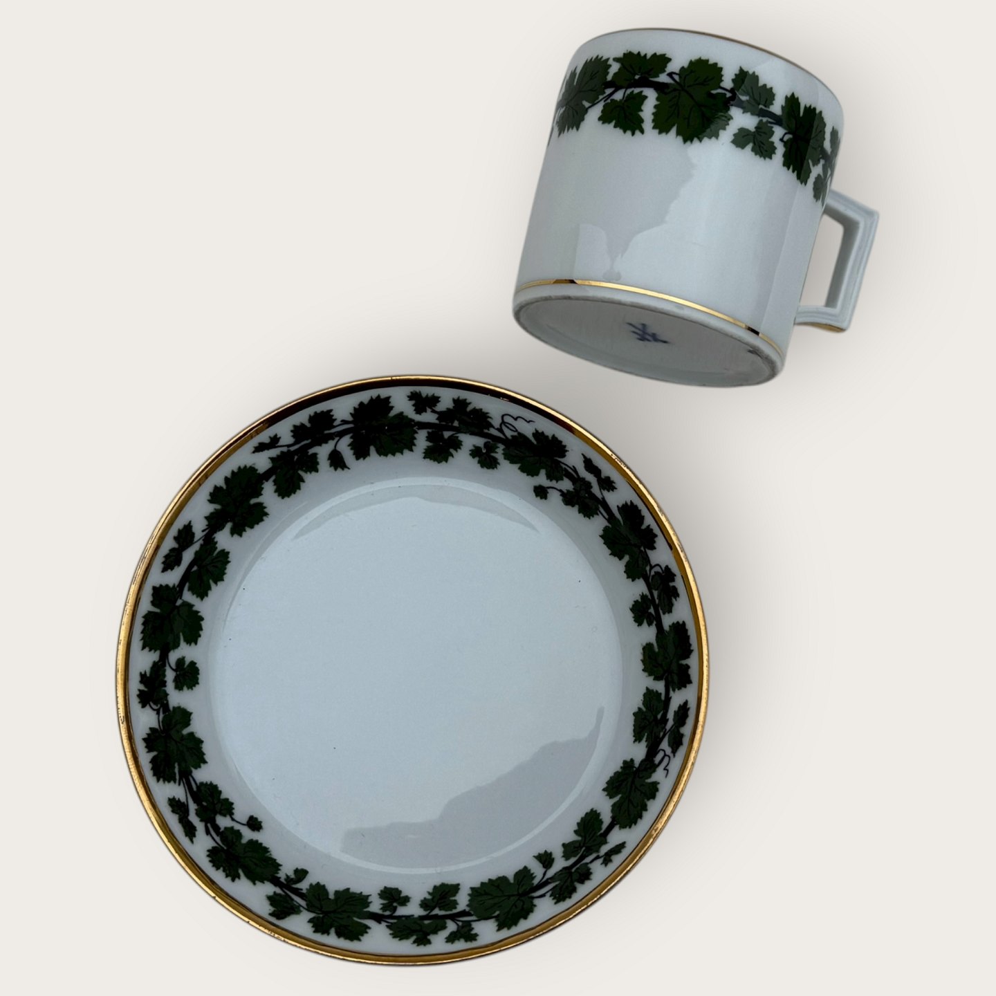 Beskrivelse: Meissen, Lille kaffekop med vinløv og guldkanter, højde 5cm, diameter 5cm *fin stand*